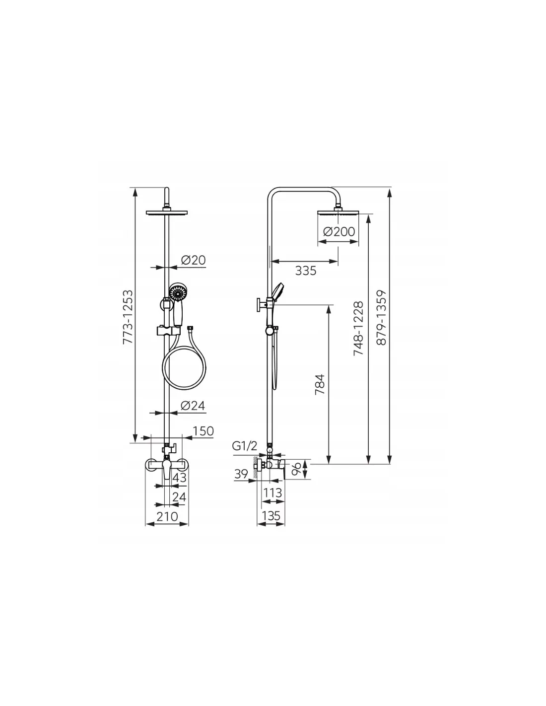 Wysokość drążka deszczowni [mm]: 773 - 1253