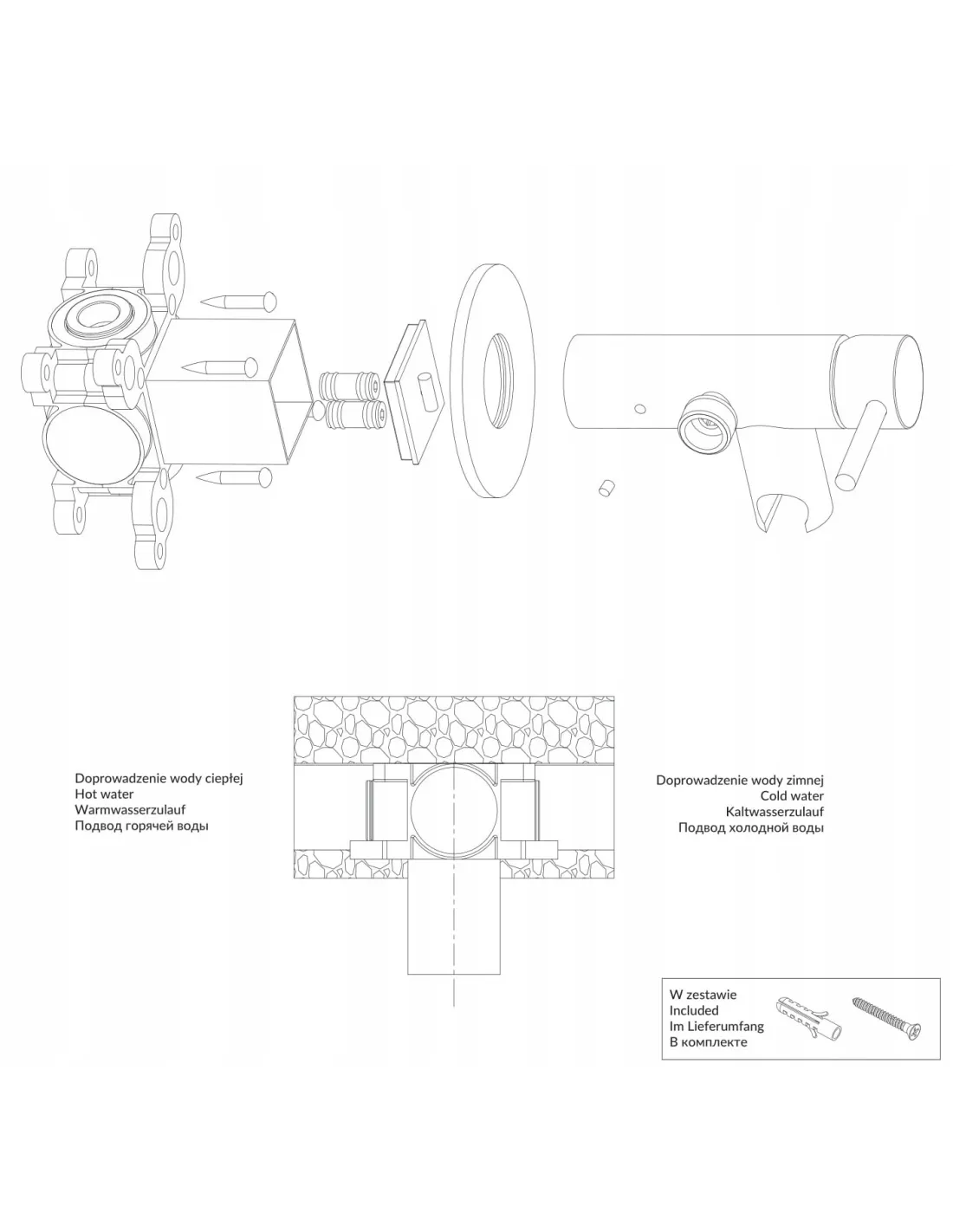 - bateria bidetowa podtynkowa, element podtynkowy
