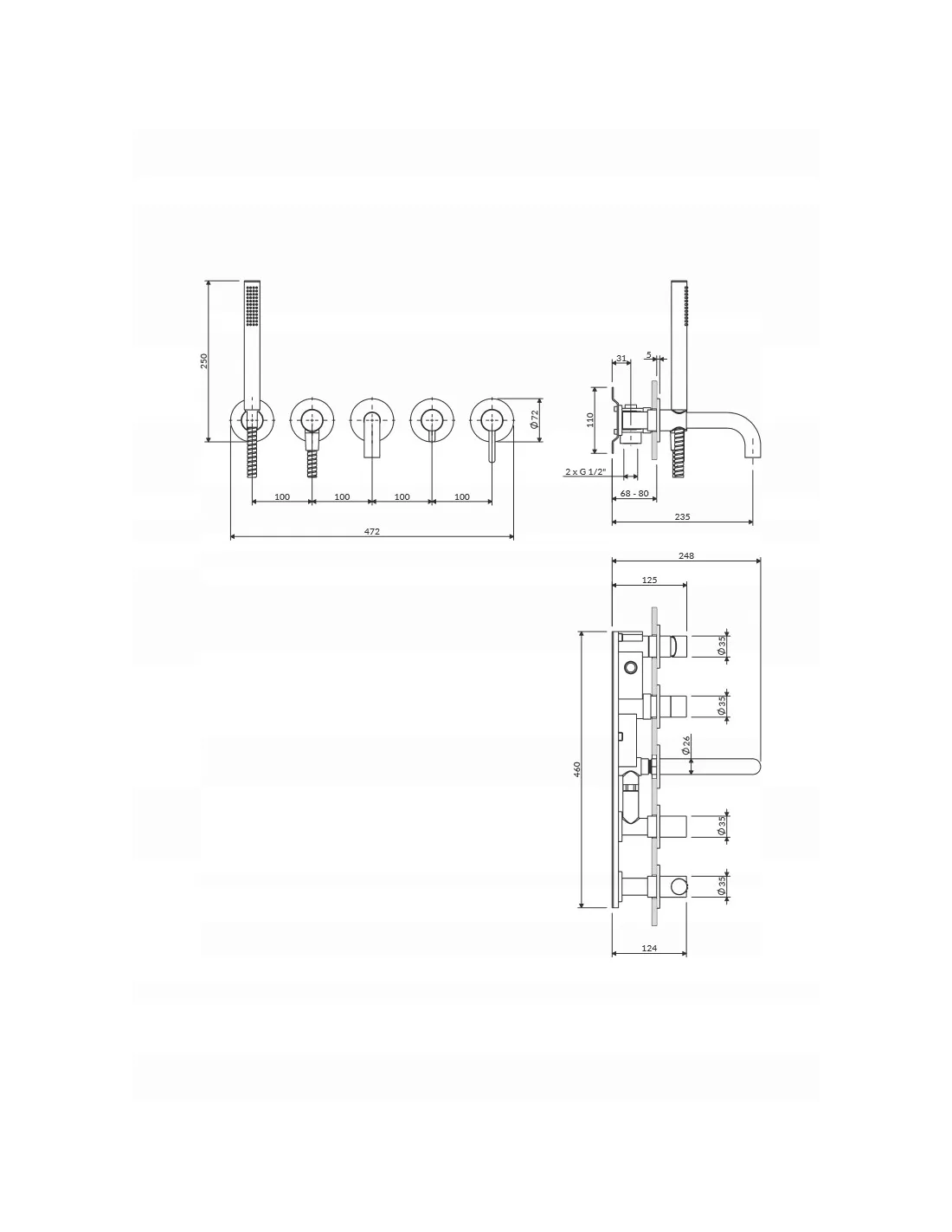 Y | bateria wannowa 5-otworowa podtynkowa, mosiądz szczotkowany