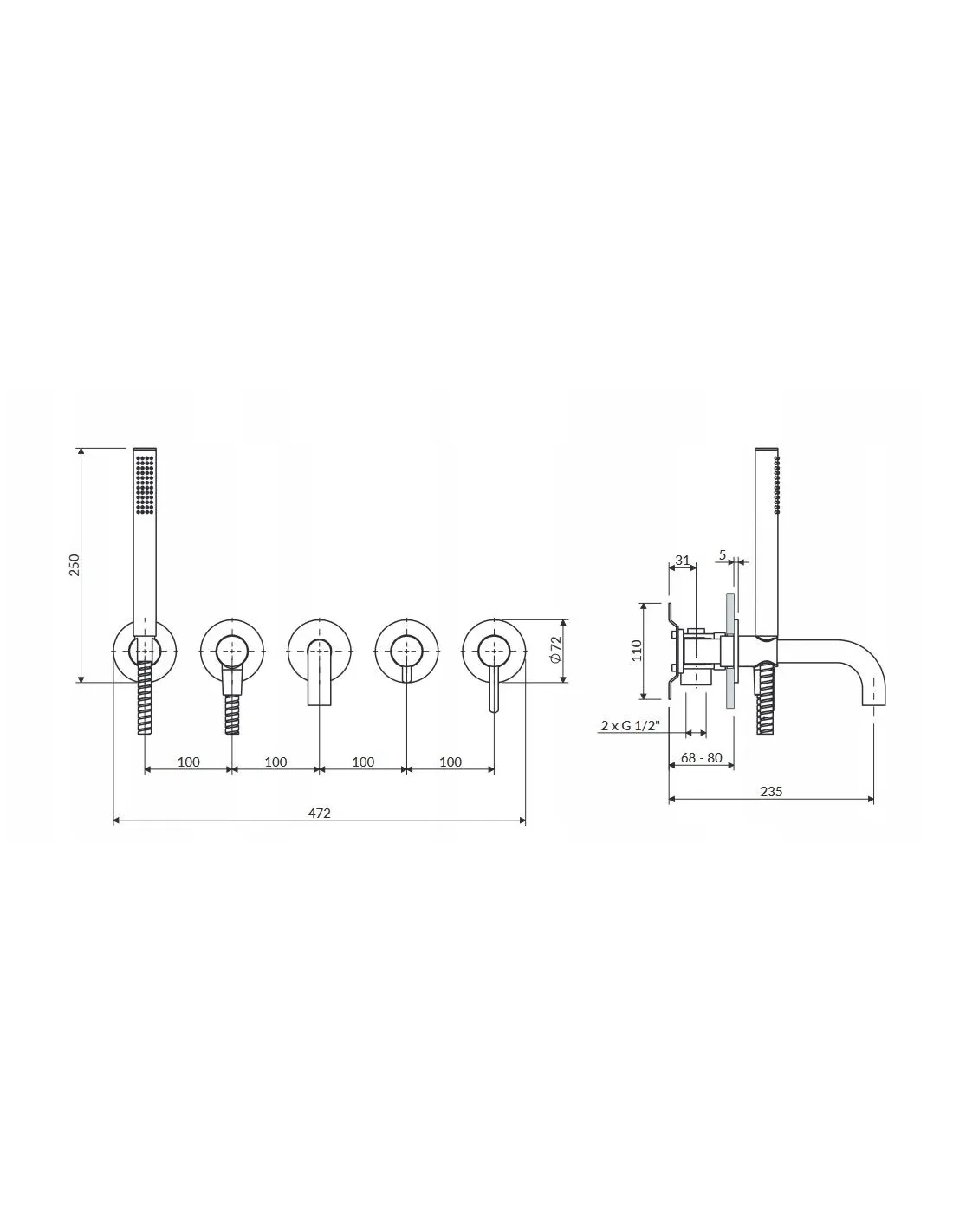 Y | bateria wannowa 5-otworowa podtynkowa, grafit