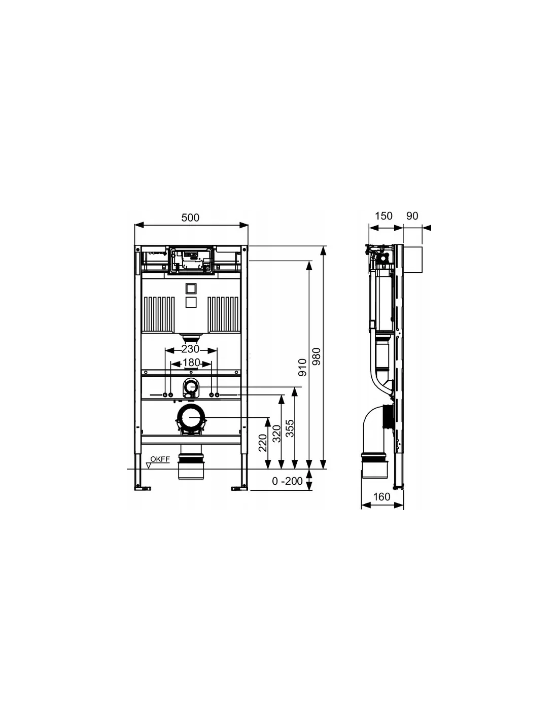 - szablon montażowy z puszką do wykonania przyłącza wodnego i elektrycznego toalety myjącej