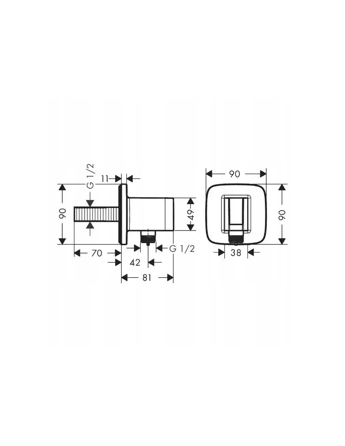PRZYŁĄCZE KĄTOWE Z UCHWYTEM PRYSZNICOWYM CHROM HANSGROHE FIXFIT Q