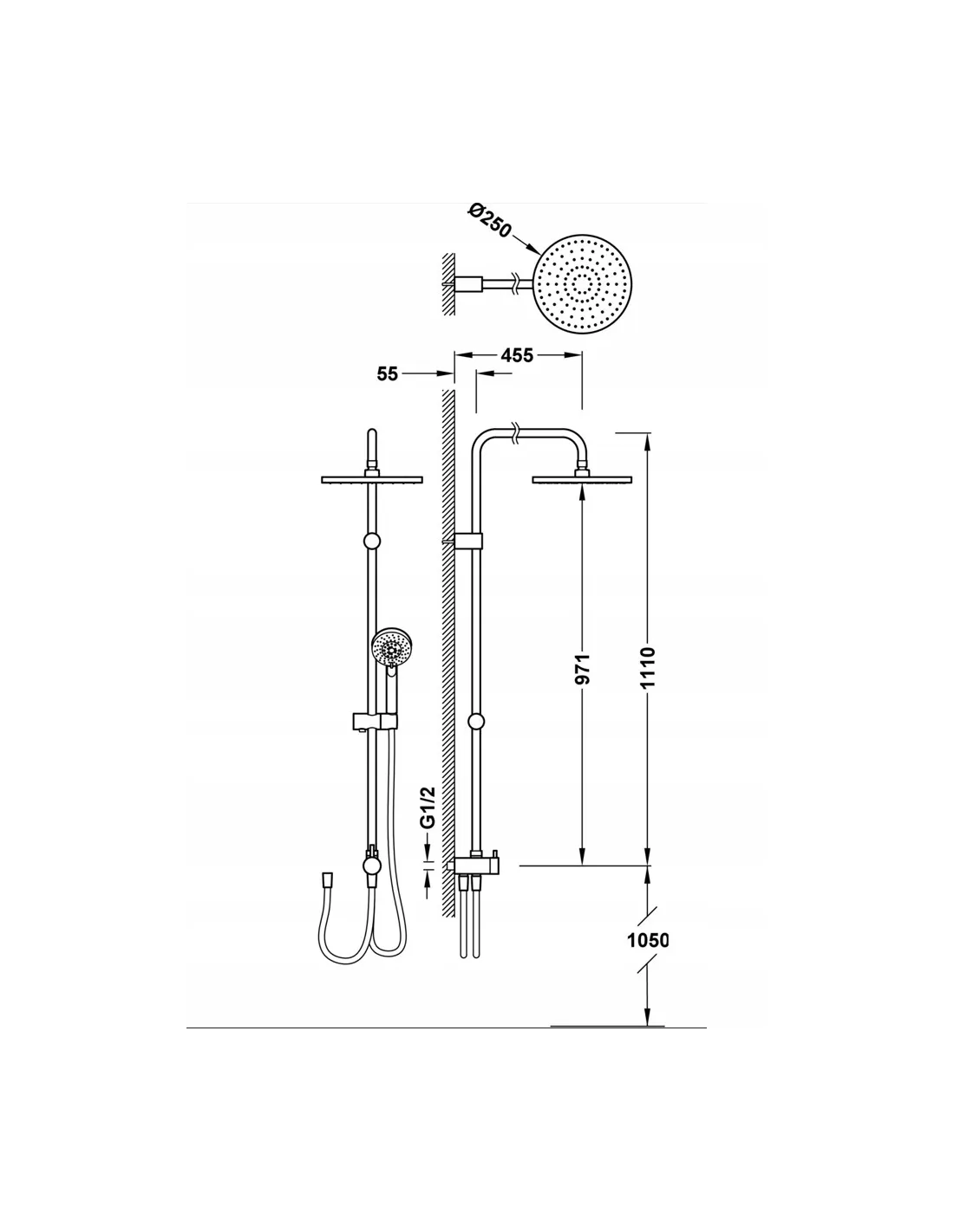 • Regulowany i przesuwany uchwyt do słuchawki prysznicowej
