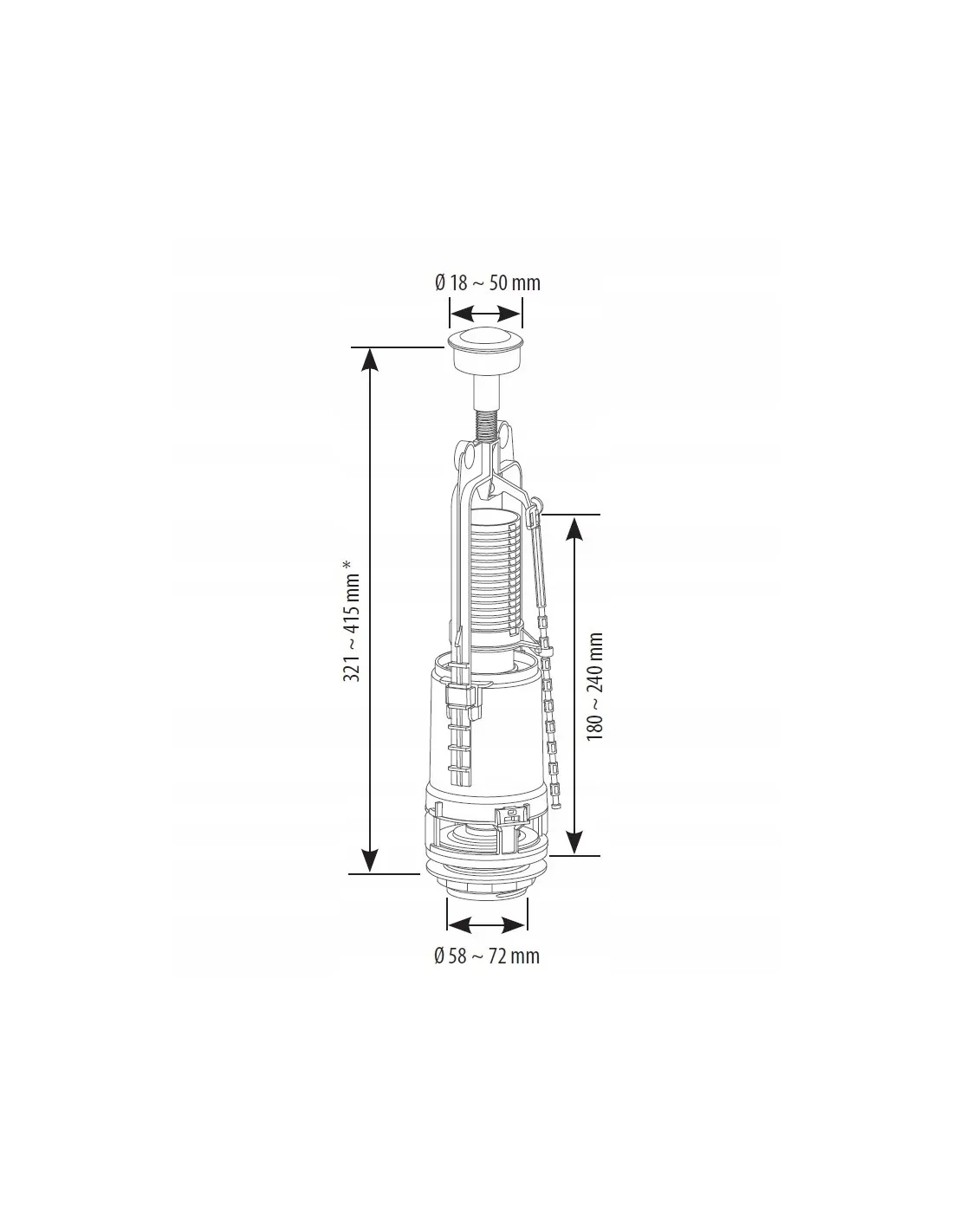 Zawór spustowy dysponuje możliwością nastawienia optymalnej ilości wypuszczanej wody. Umożliwia to – przy zastosowaniu dowolnej ceramiki – ograniczenie ilości zużywanej wody, a jednocześnie utrzymanie toalety w idealnej czystości. Charakteryzuje się dużym zakresem nastawiania wysokości. Może być stosowany w dolnopłukach i ceramice.