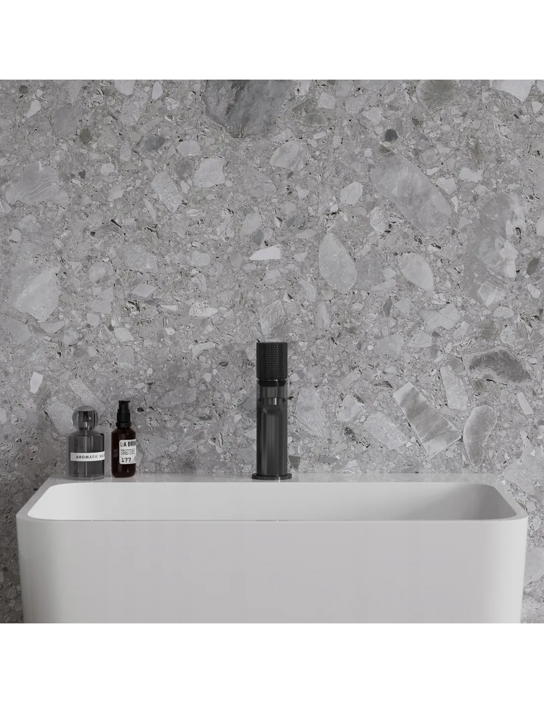 Oszczędny, architektoniczny wzór z wyraźnym frezowaniem zachwyca wyrafinowanym zestawieniem faktur i perfekcyjnym wykonaniem. Bateria została wykonana z wysokogatunkowego mosiądzu oraz wyposażona w najwyższej jakości głowicę ceramiczną. Innowacyjne rozwiązania technologiczne pozwalają zredukować zużycie wody o połowę oraz zapewniają najwyższy komfort użytkowania.