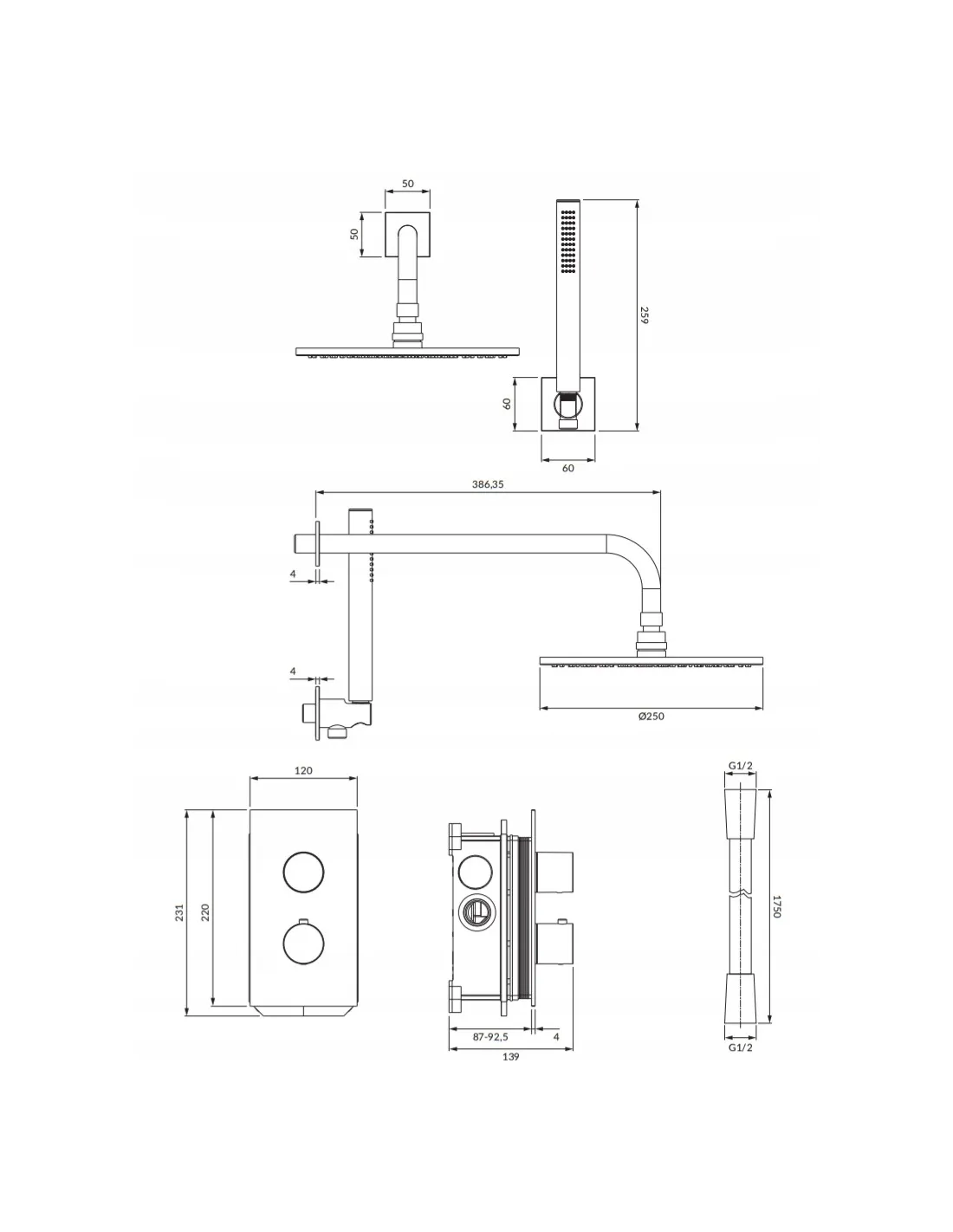 - termostatyczna bateria prysznicowo-wannowa podtynkowa (CT8036GLB)