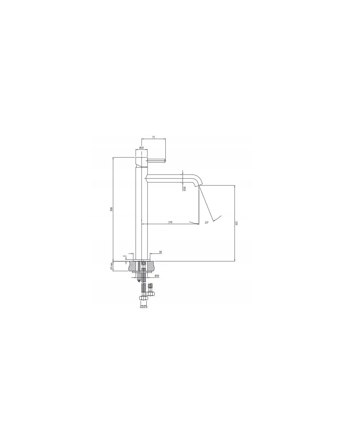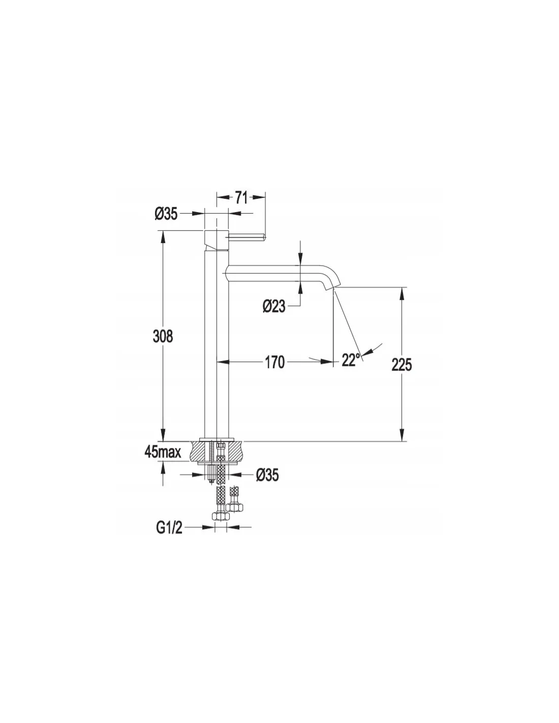 - wysokość wypływu wody: 22,5 cm