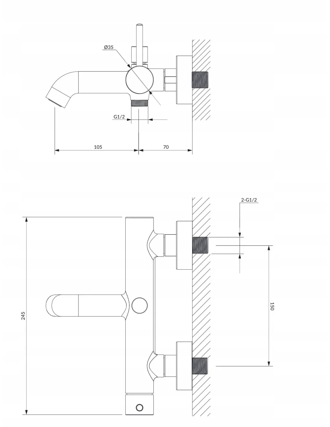 • Wąż prysznicowy w osłonie stalowej, długość: 150 cm
