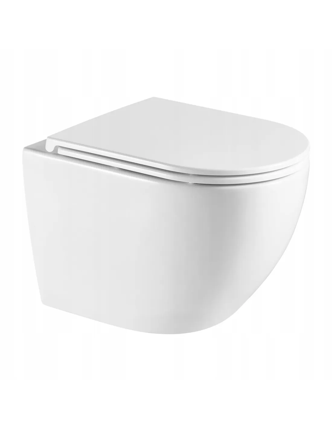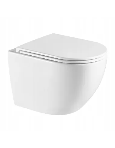 OMNIRES OTTAWA COMFORT SILENT POWER - bezkołnierzowa miska toaletowa 54cm wisząca z system spłukiwania wirowego VORTEX 360 i twarda deską wolnoopadającą z duroplast 54 x 37 cm