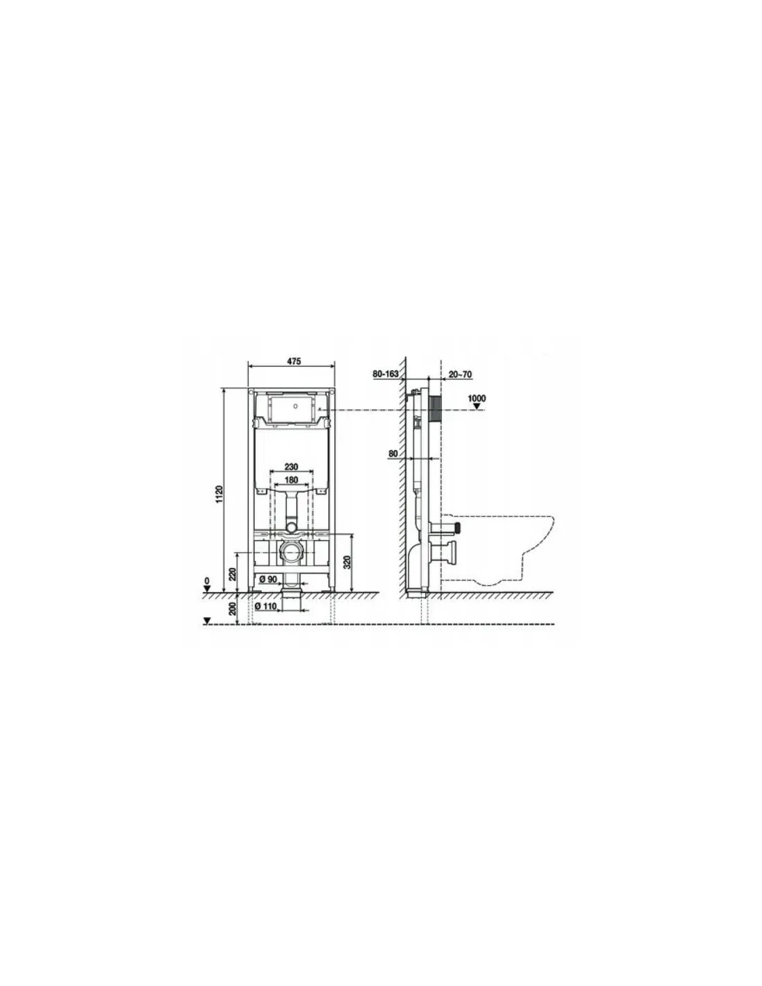 • Rodzaj odpływu: poziomy