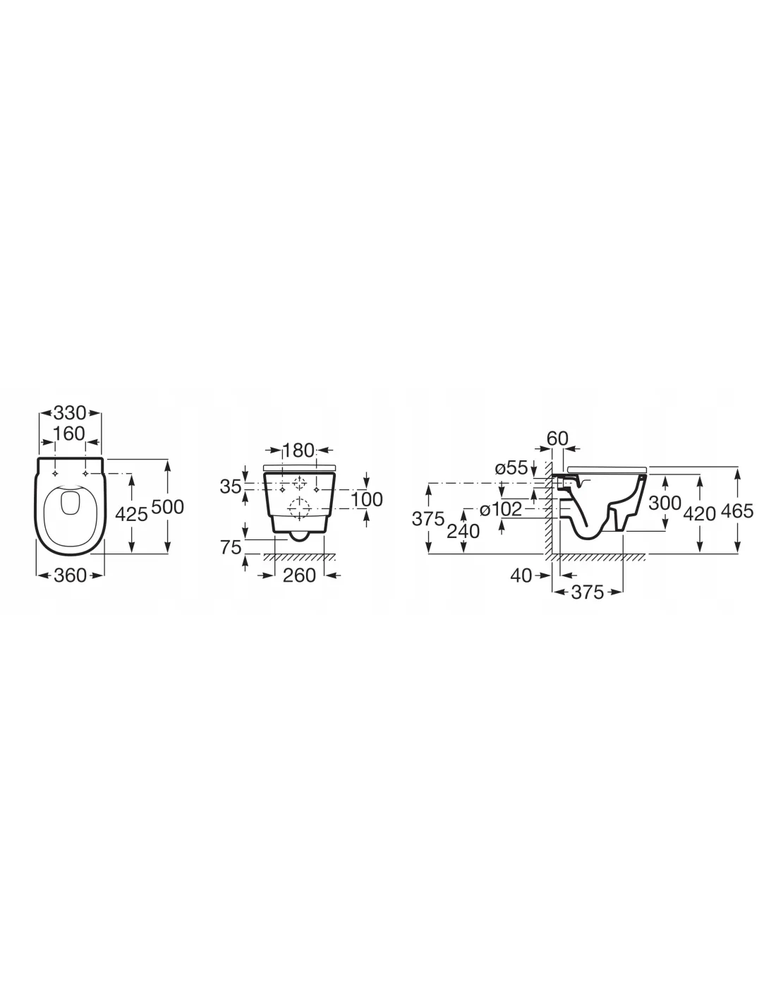 Roca Tura miska wc wisząca bez kołnierza biały A346697000