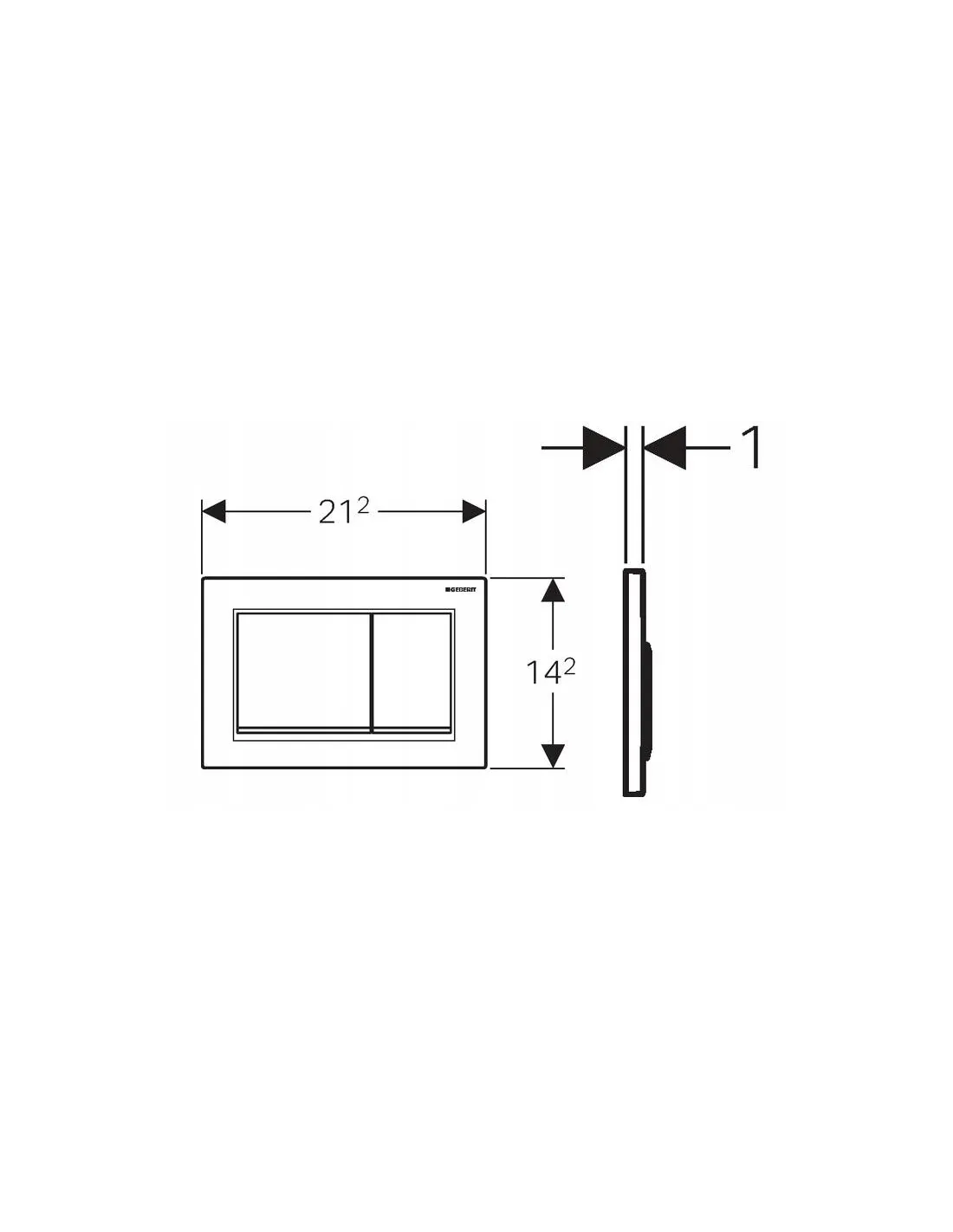 Ramka jak i przyciski mają wygląd prostokąta z czego jeden przycisk mniejszy (do spłukiwania mniejszą ilością wody) a drugi większy (do spłukiwania większą ilością wody).