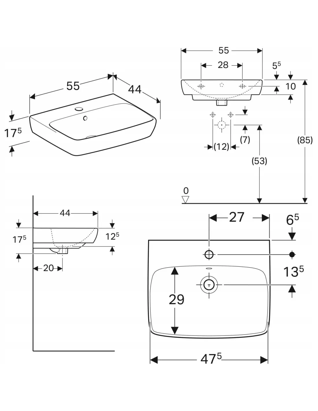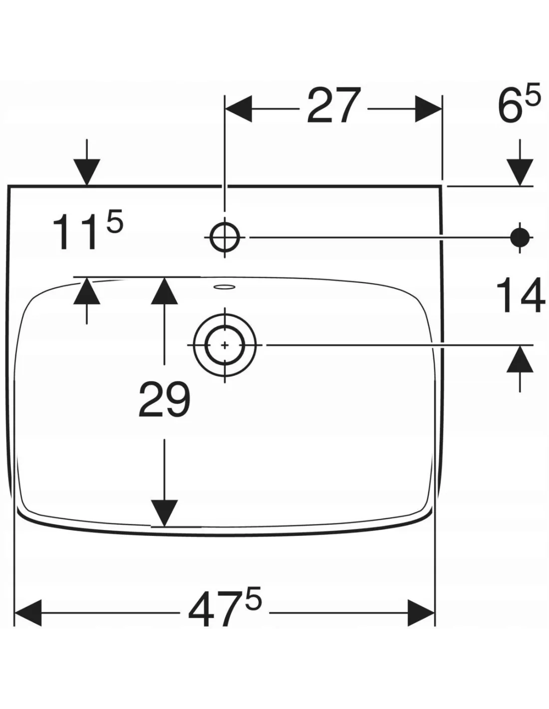 Specyfikacja umywalki GEBERIT Selnova Square: