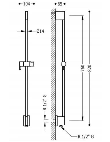 TRES Drążek przesuwny z dopływem wody ze ściany 03493199