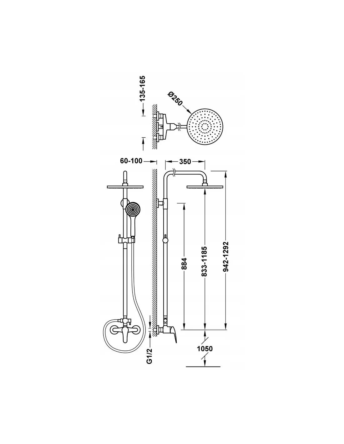 · Z inwersorem wbudowanym w drążku prysznicowym.· Deszczownica obrotowa: ? 250 mm.· Obrotowy i przesuwny uchwyt do słuchawki prysznicowej.· Słuchawka prysznicowa z systemem zapobiegającym osadzaniu się kamienia.· Metalowy wąż.