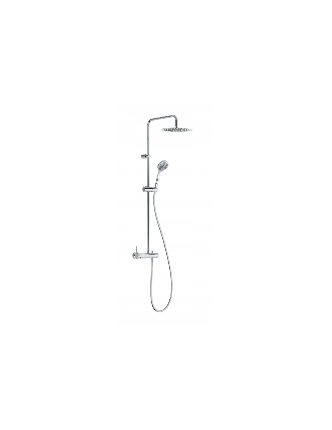 · Deszczownica obrotowa ze stali nierdzewnej: ? 250 mm.· Obrotowy i przesuwny uchwyt do słuchawki prysznicowej.· Słuchawka prysznicowa z systemem zapobiegającym osadzaniu się kamienia: ? 100 mm.· Satynowy wąż.