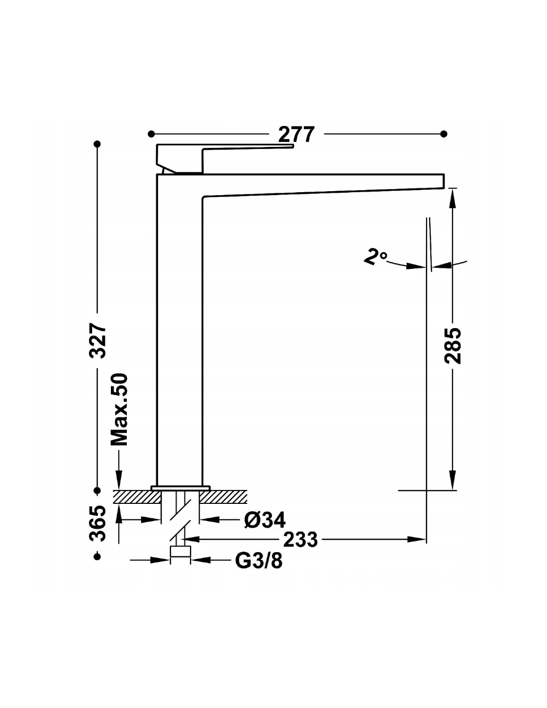 - Rodzaj wylewki: stała
