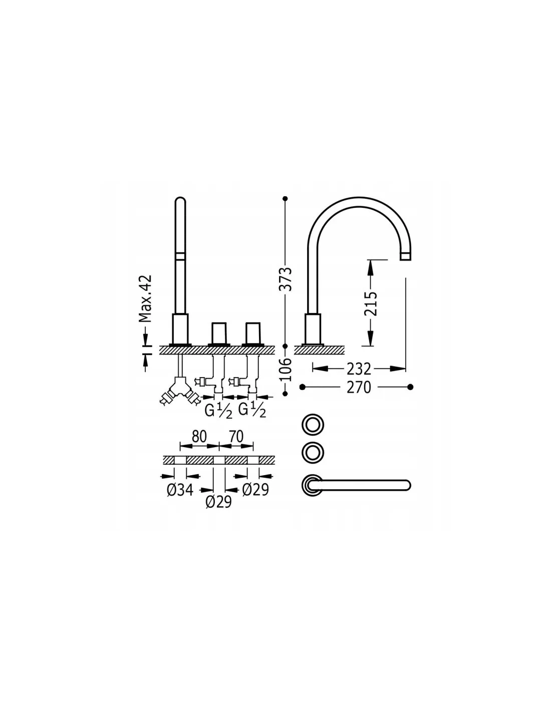 Bateria umywalkowa stojąca Tres srebrny 6110501
