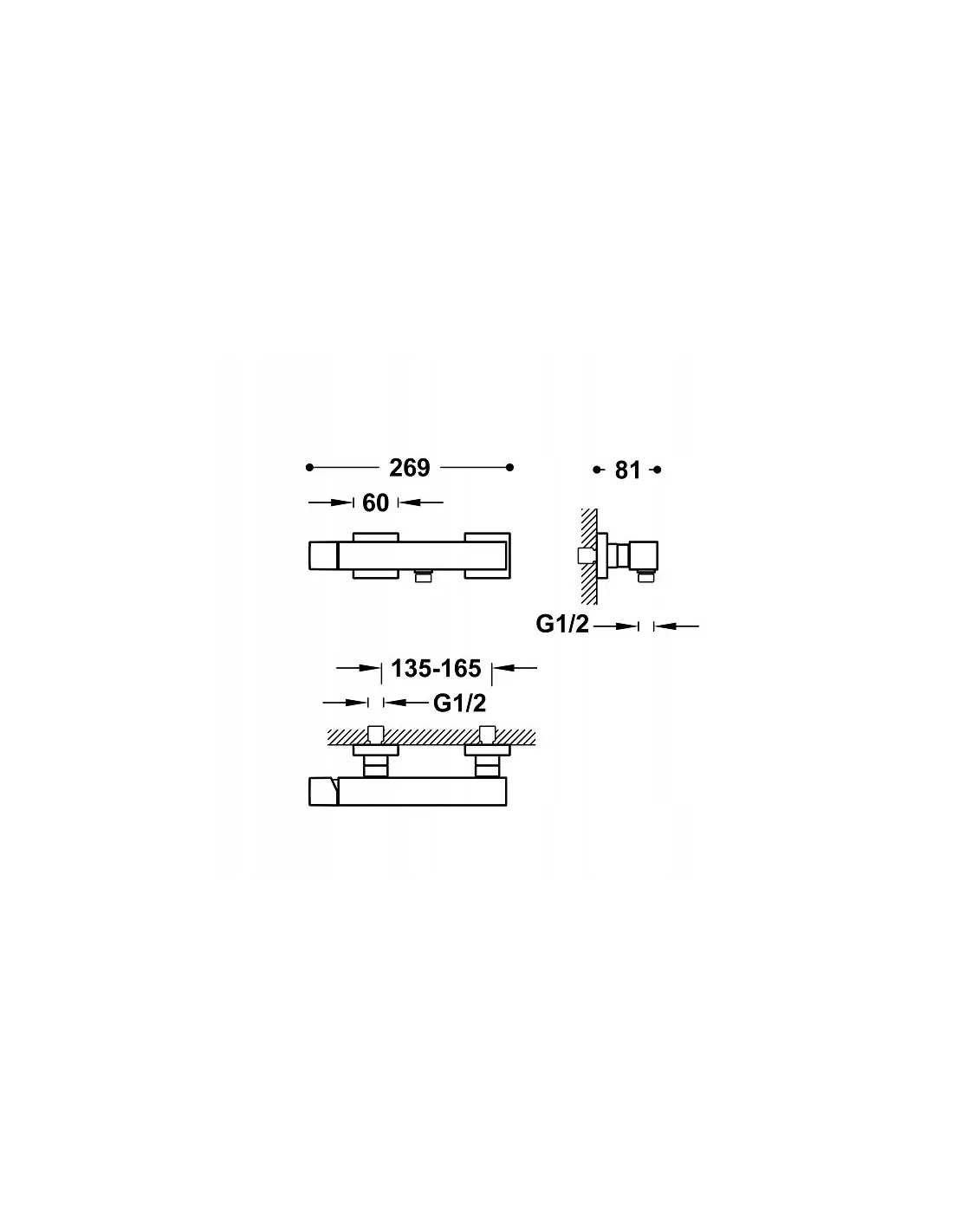 Tres Cuadro Exclusive bateria prysznicowa ścienna stal