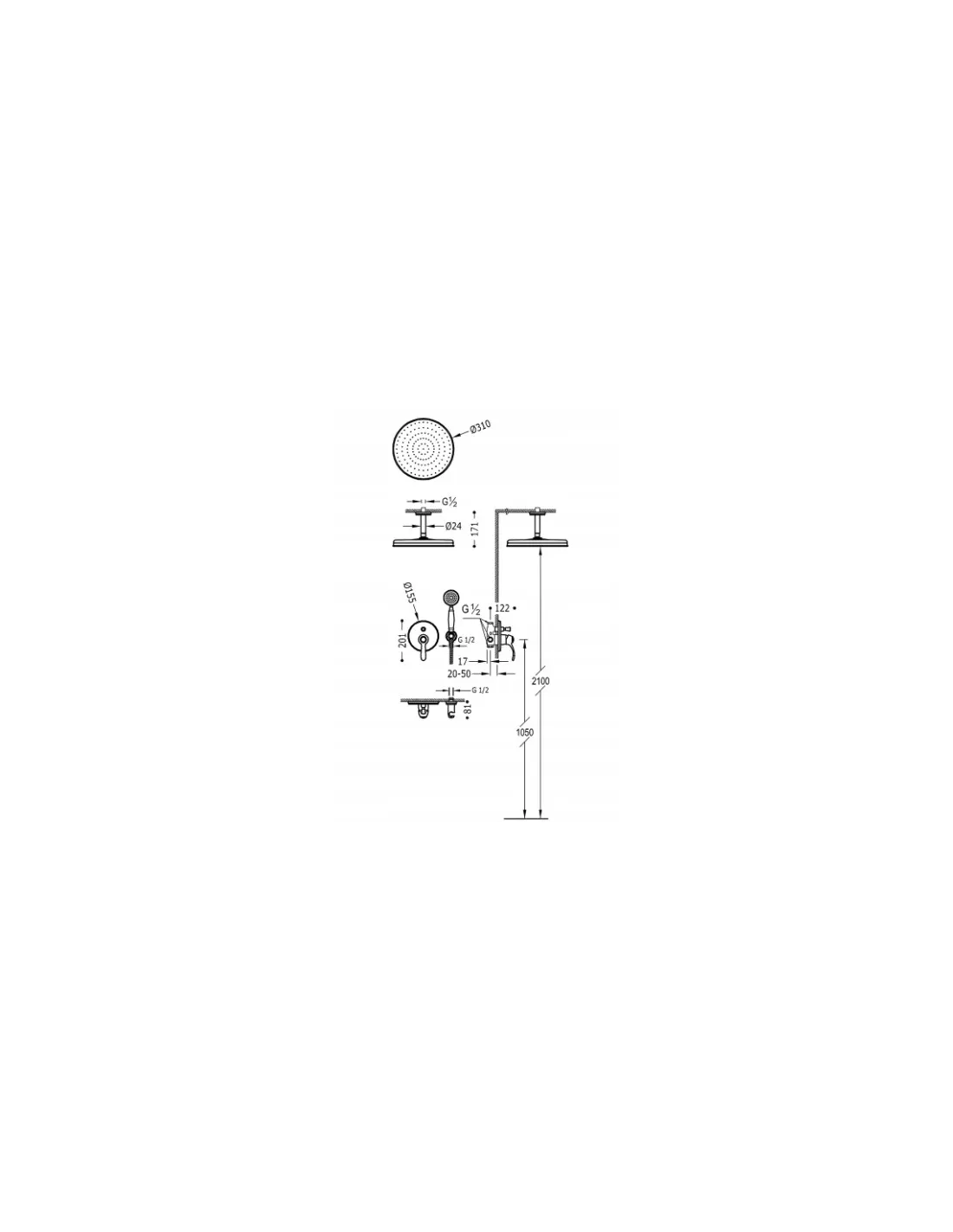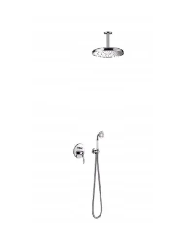 W zestawie Bateria z przełącznikiem, Deszczownica, Słuchawka prysznicowa, Wąż prysznicowy, Ramię natrysku, Przyłącze kątowe