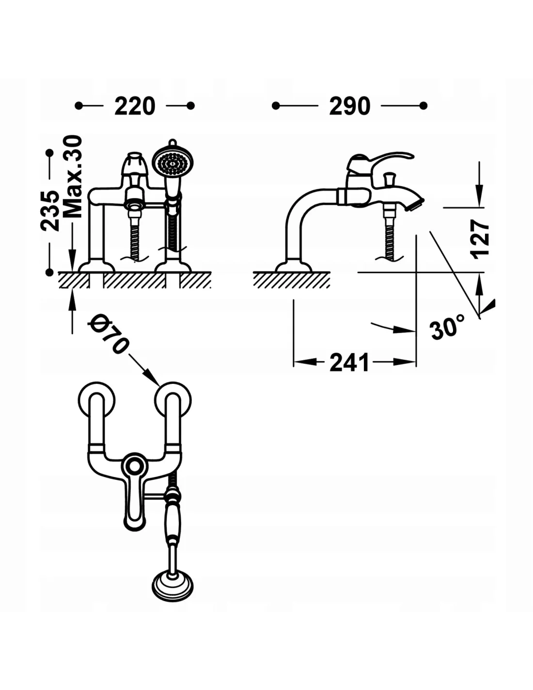 TRES Bateria wannowa TRES CLASIC mosiądz antyczny matowy 24219401LM