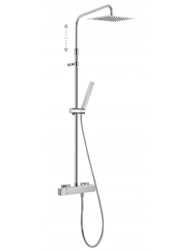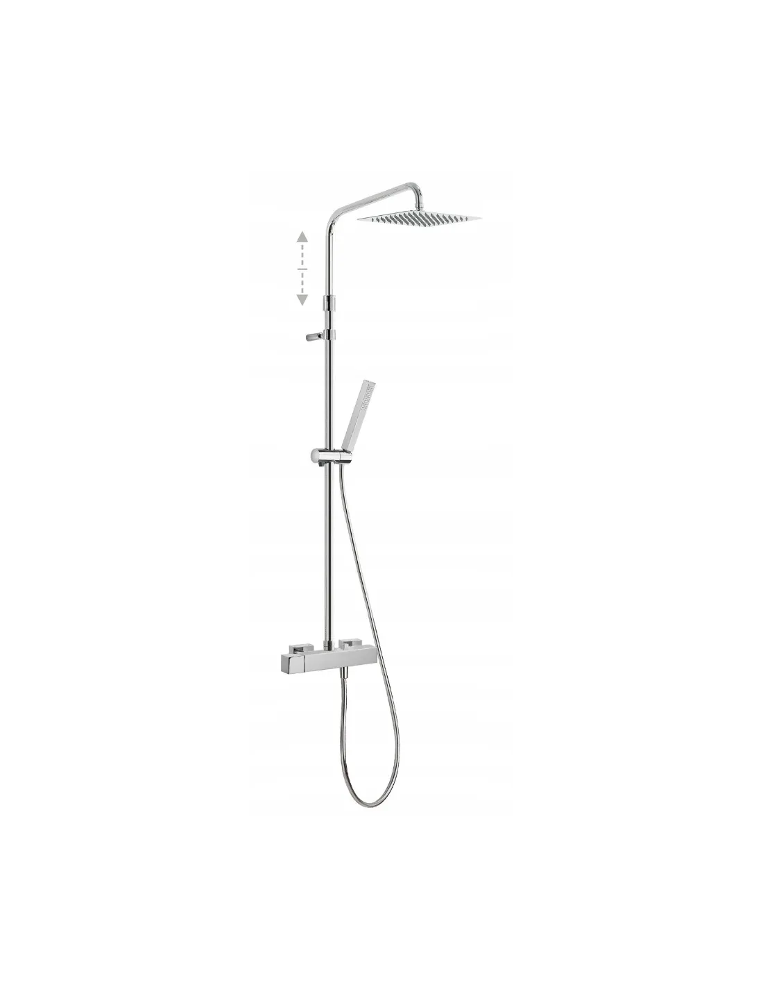 · Deszczownica obrotowa ze stali nierdzewnej: 250x250 mm.· Obrotowy i przesuwny uchwyt do słuchawki prysznicowej.· Słuchawka prysznicowa z mosiądzu z systemem zapobiegającym osadzaniu się kamienia.· Satynowy wąż.