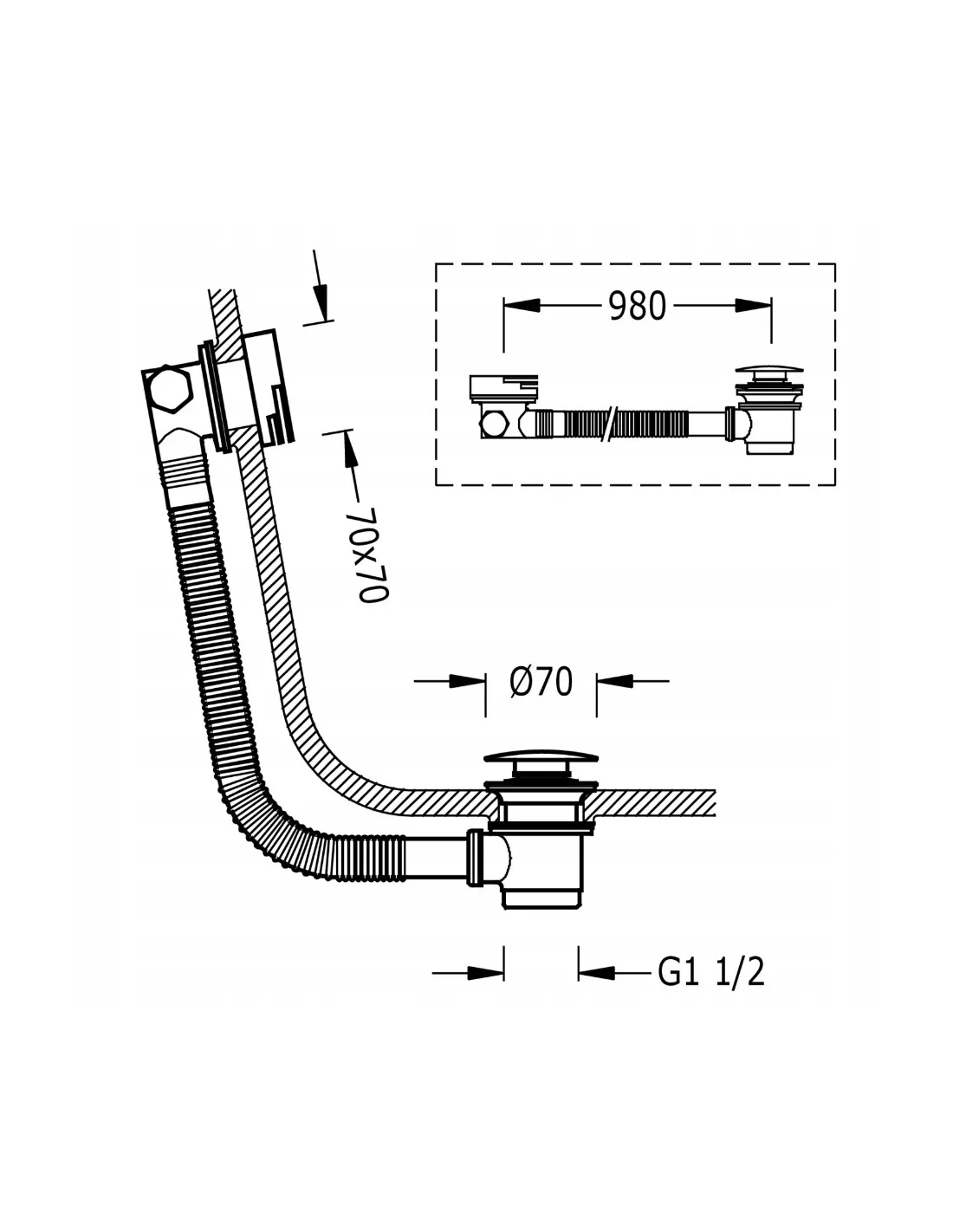 Korek: ? 70 mm. Rura elastyczna: maks. 980 mm.