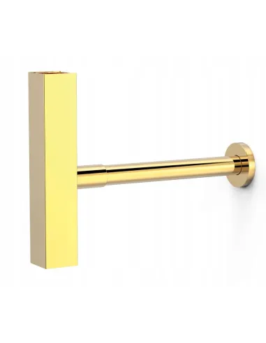 TRES Syfon teleskopowy kwadratowy z odpływem do umywalki złoto 10710342OR