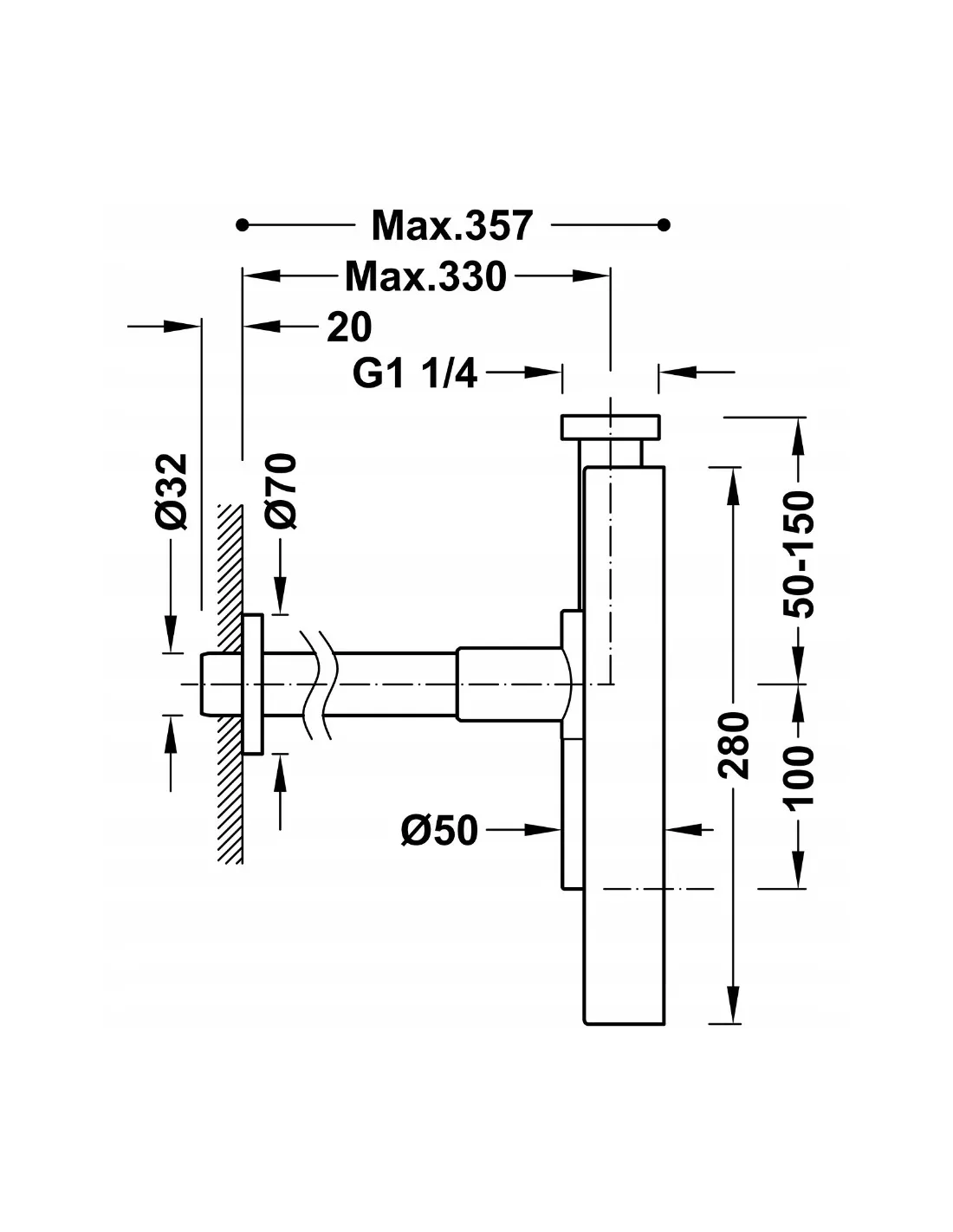 TRES Compl Syfon teleskopowy kwadratowy z odpływem do umywalki 10710342OR