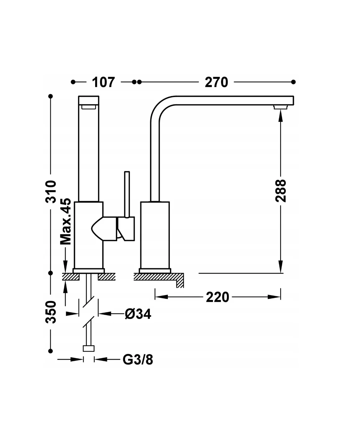 Z elastycznymi wężami zasilającymi G3/8.