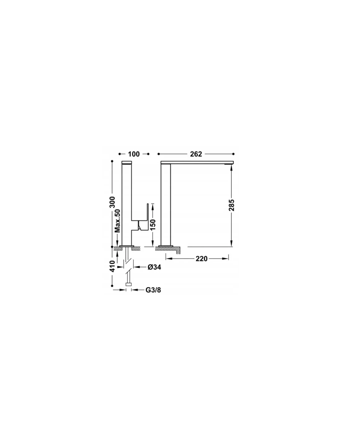 Bateria umywalkowa z wylewką 34x10 mm i dźwignią Tres CUADRO: