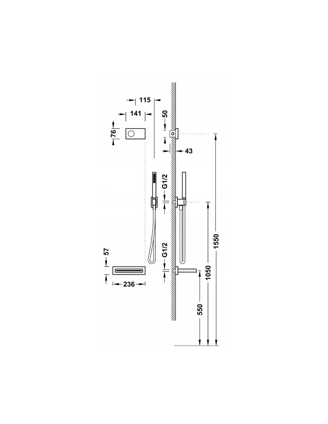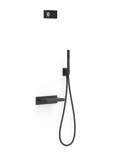 · W zestawie czarny elektroniczny sterownik z uszczelkami przeciwwilgociowymi firmy Schlüter.· W zestawie elektroniczna centralka termostatyczna (2-drożna).· Wylewka stała naścienna z wyjściem wody w formie kaskady.· Uchwyt do słuchawki prysznicowej z przyłączem w ścianie.· Słuchawka prysznicowa z mosiądzu z systemem zapobiegającym osadzaniu się kamienia.· Satynowy wąż.