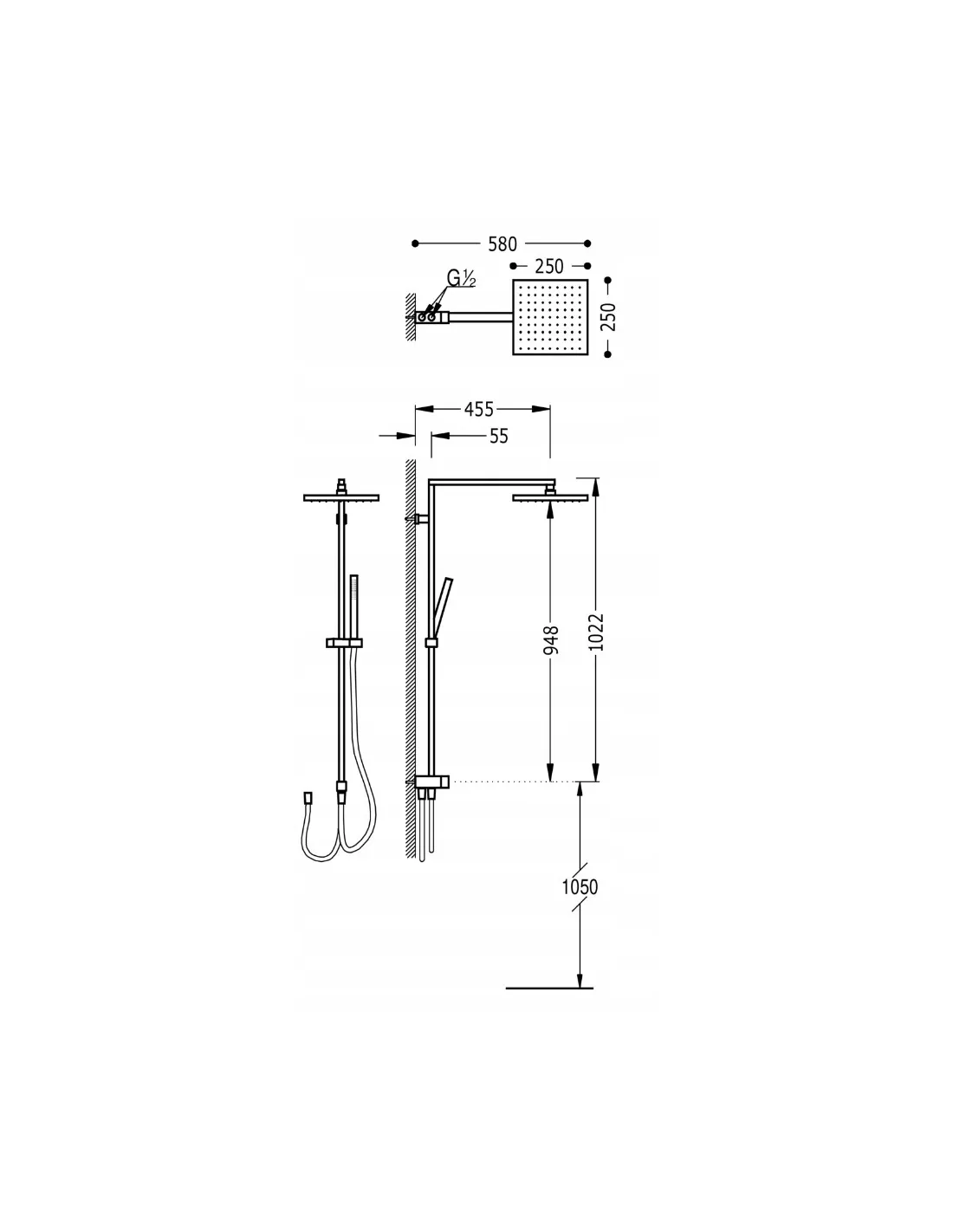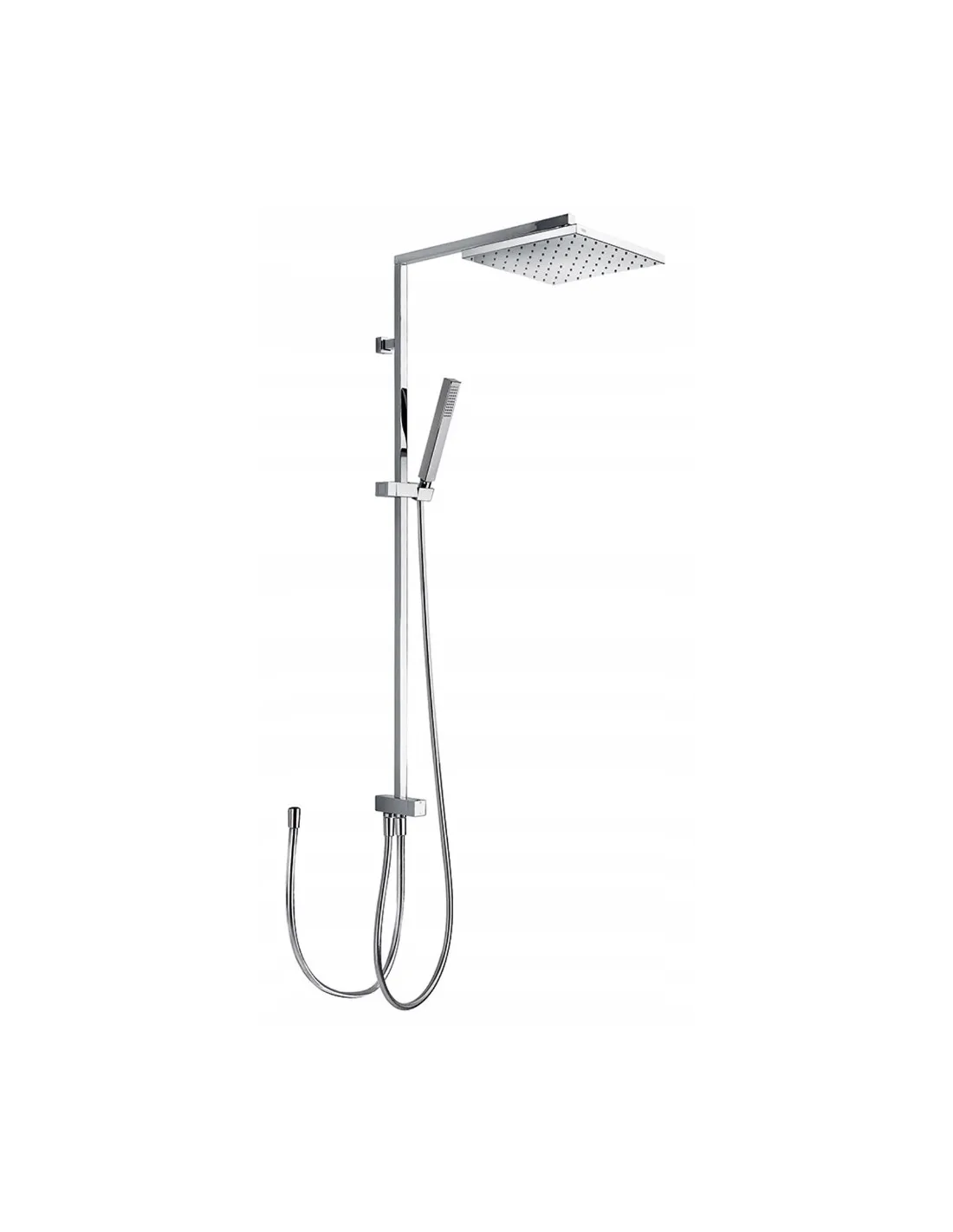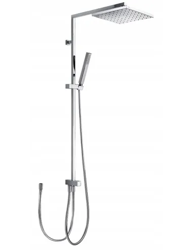 · Z inwersorem wbudowanym w drążku prysznicowym.· Deszczownica obrotowa ze stali nierdzewnej: 250x250 mm.· Obrotowy i przesuwny uchwyt do słuchawki prysznicowej.· Słuchawka prysznicowa z mosiądzu z systemem zapobiegającym osadzaniu się kamienia.· Satynowy wąż.