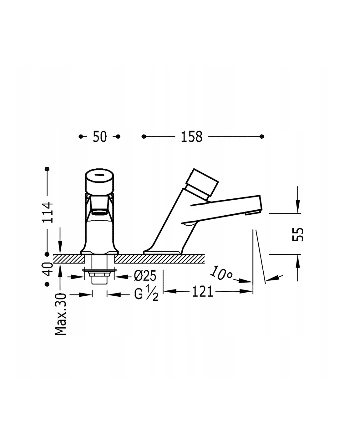 TRES Bateria umywalkowa stojąca, czasowa do wody zimnej lub wstępnie zmieszanej, chrom TEMPOTRES 01210303