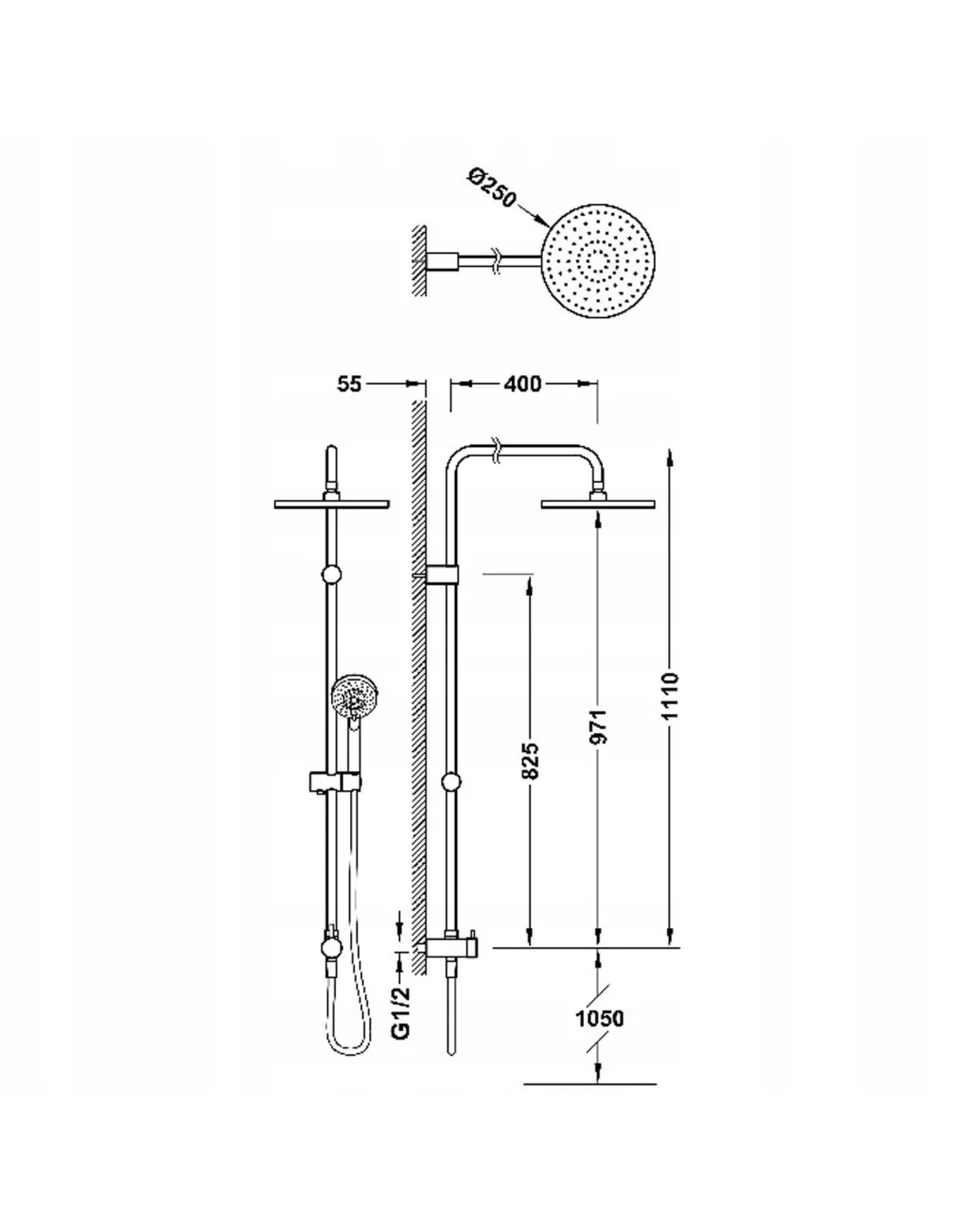 - Głowica natryskowa o średnicy 22,5 cm