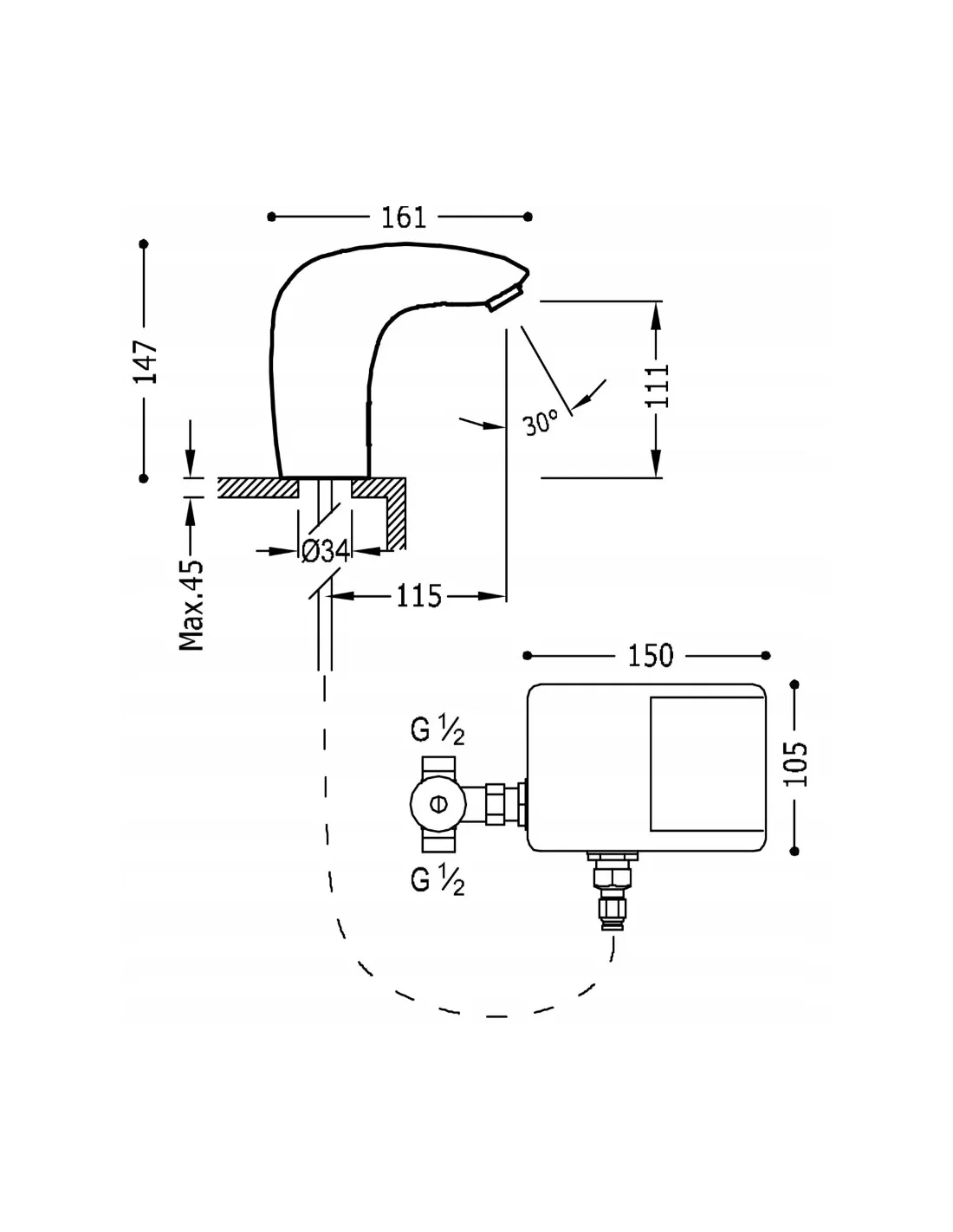 Uruchamiana przez czujnik podczerwieni. Zawiera zawór mieszający 2-drożny z elastycznymi wężami (nr ref.: 19250730