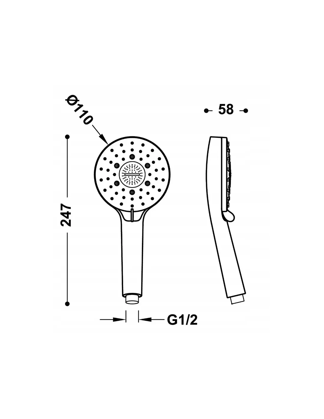 Wymiary: ? 110 mm. 5 rodzajów strumienia. Samoczyszczące dysze antyosadowe.
