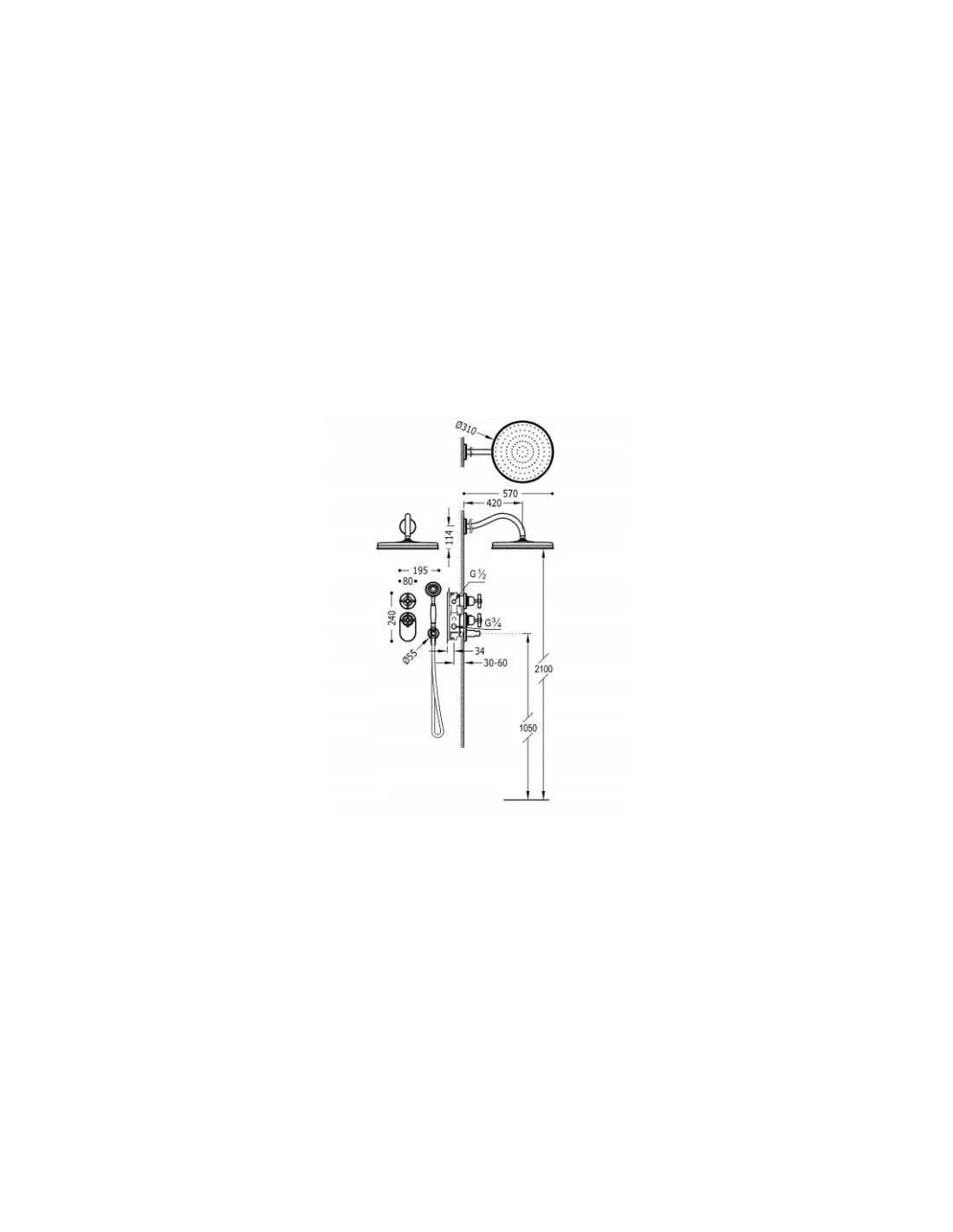 - deszczownica mosiężna o średnicy 31 cm z ramieniem ściennym