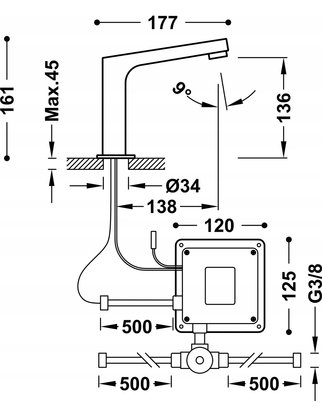 - zawiera zawór mieszający 2-drożny z elastycznymi wężami