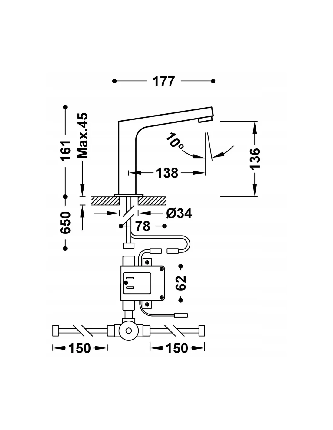 Tres Tempo Base bateria umywalkowa stojąca elektroniczna chrom 39210309
