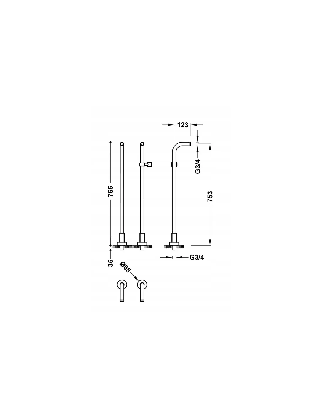 TRES Compl Kolankowe ujęcia wody do baterii wannowej 161194