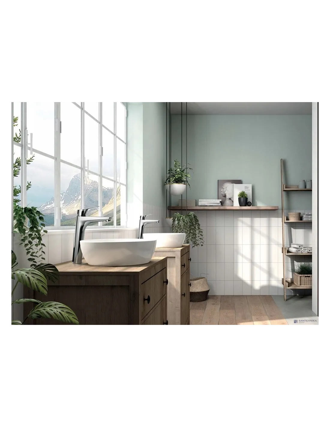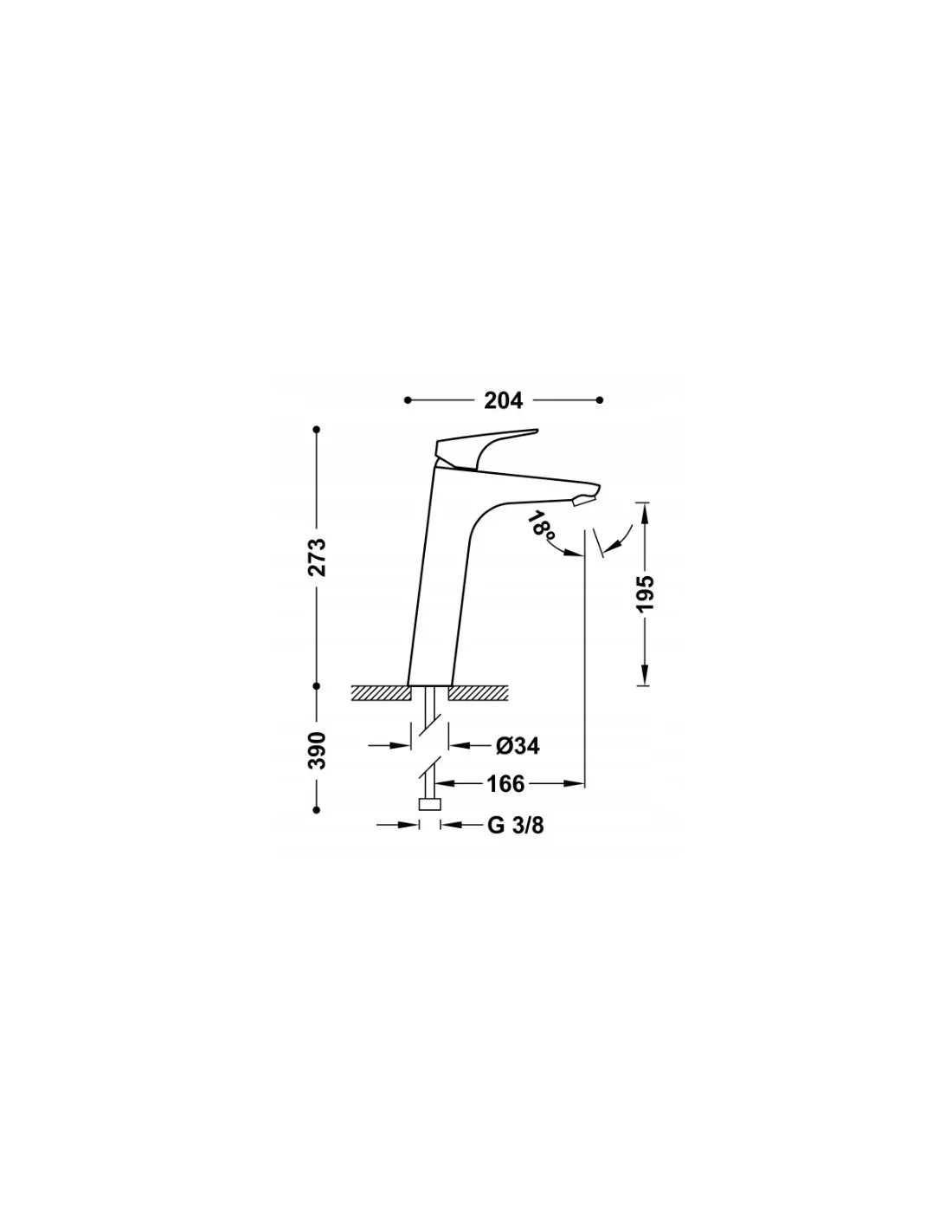 Bateria umywalkowa Canigo marki Tres ma wysokość 27,3cm a zasięg wylewki wynosi 16,6cm. Jest to model jednouchwytowy tzw. mieszaczowy, który możemy obsługiwać jedną ręką. Za pomocą dźwigni jesteśmy w stanie w łatwy sposób ustawić temperaturę wody oraz siłę strumienia. Wariant stojący wymaga montażu w otworze w umywalce. Wylewka jest stała, co oznacza brak regulacji kierunku strumienia wody. Taki rodzaj baterii jest prostszy i bardziej przystępny cenowo niż z wylewką obrotową. Produkt wykonany został w kolorze chrom.