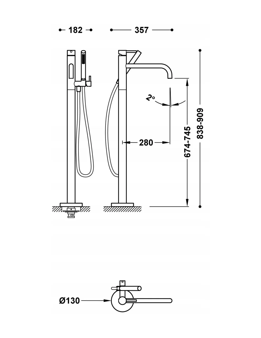 TRES Study Exclusive Bateria podłogowa wannowa i prysznicowa 26247005