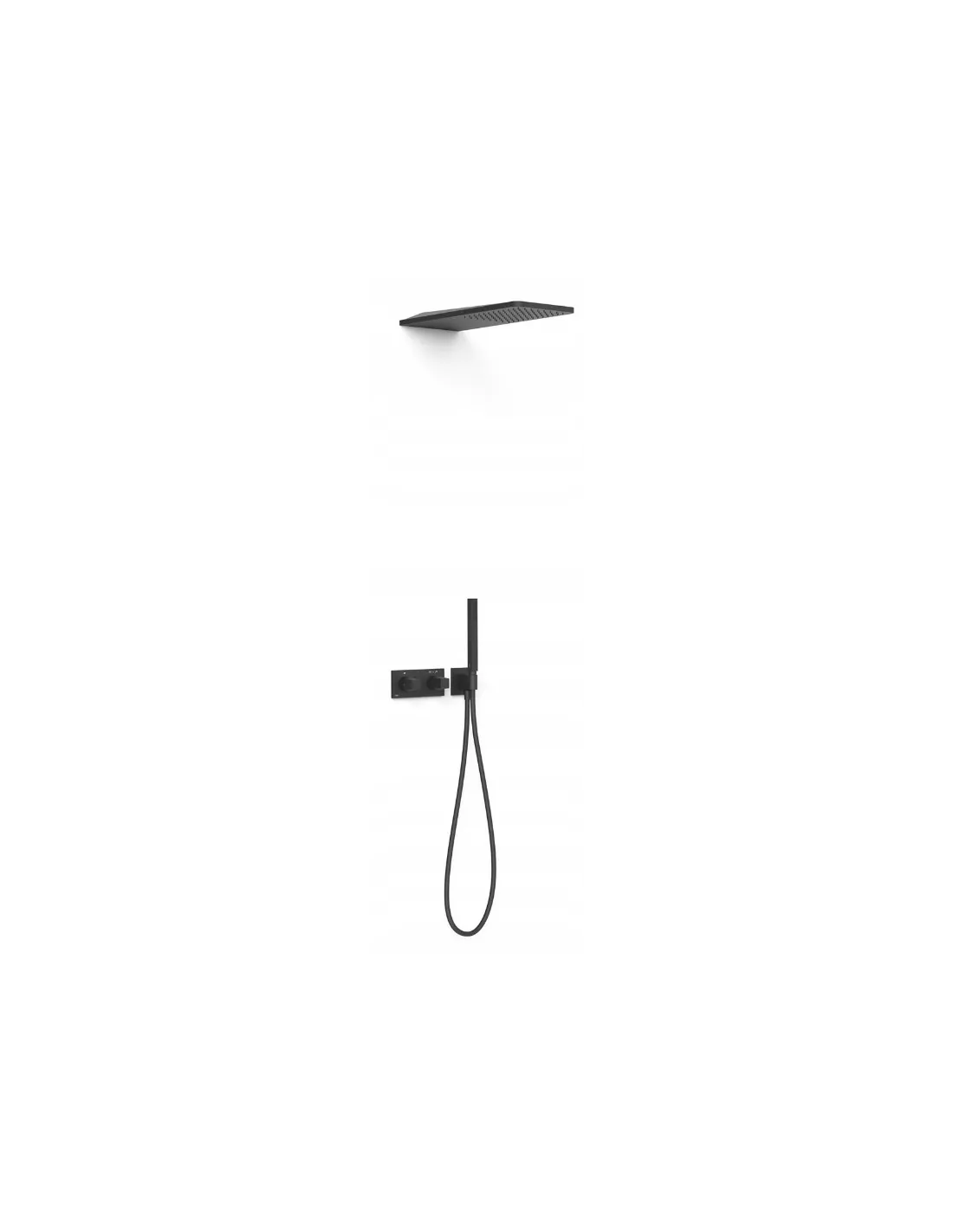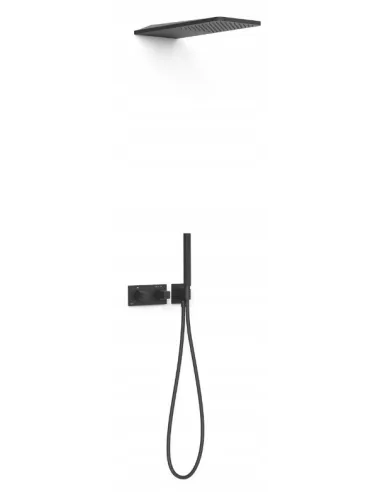 · W zestawie korpus podtynkowy termostatyczny o instalacji poziomej.· Regulator natężenia przepływu i rozgałęźnik 2-drożny.· Pokrętło kwadratowo-okrągłe.· Deszczownica naścienna ze stali nierdzewnej: 210x550 mm.· Uchwyt do słuchawki prysznicowej z przyłączem w ścianie.· Słuchawka prysznicowa z mosiądzu z systemem zapobiegającym osadzaniu się kamienia.· Satynowy wąż.