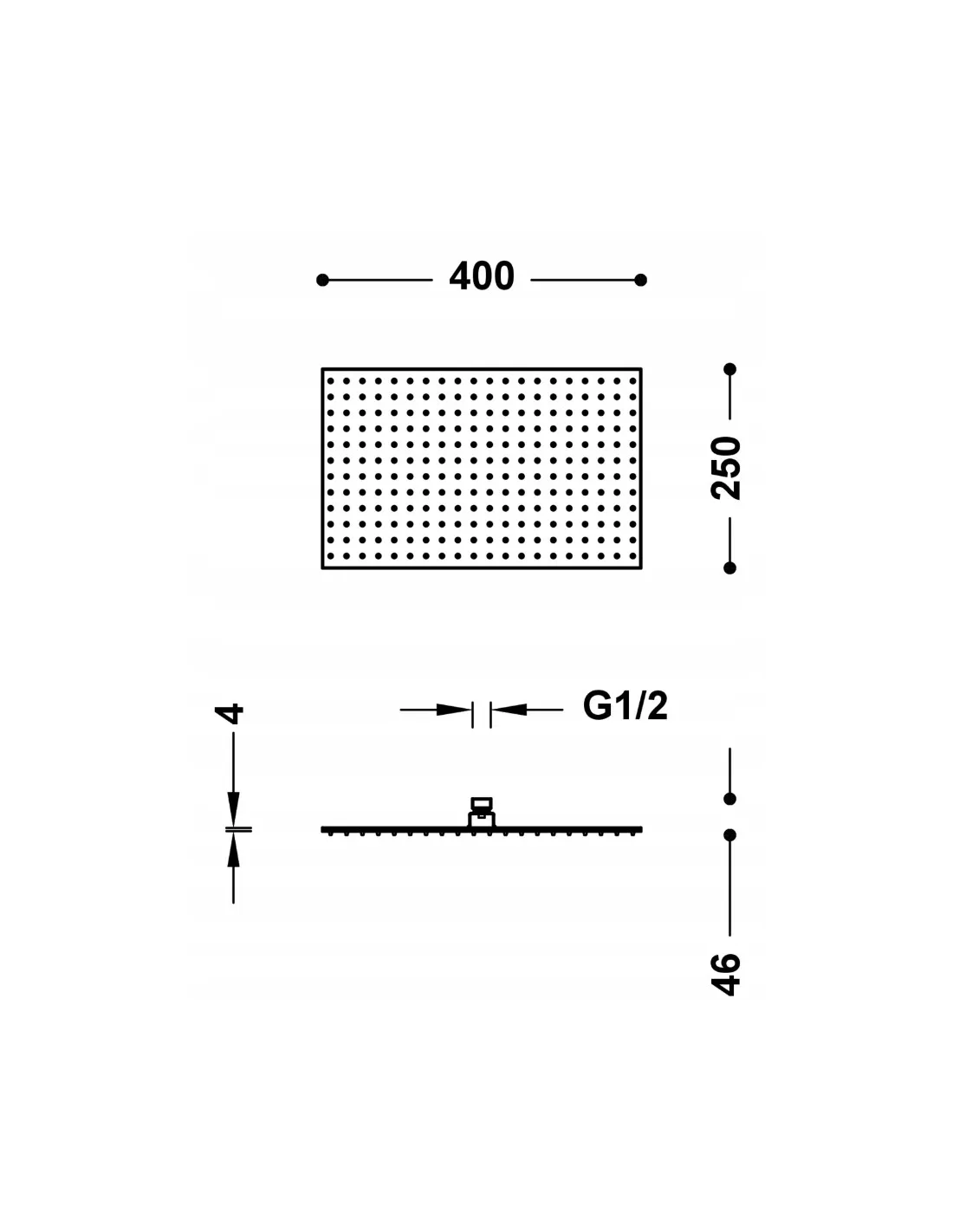 Wyjątkowo cienki profil: 4 mm. Wymiary: 400x250 mm. Regulowany przegub. Materiał: Stal nierdzewna. Dysze antyosadowe.