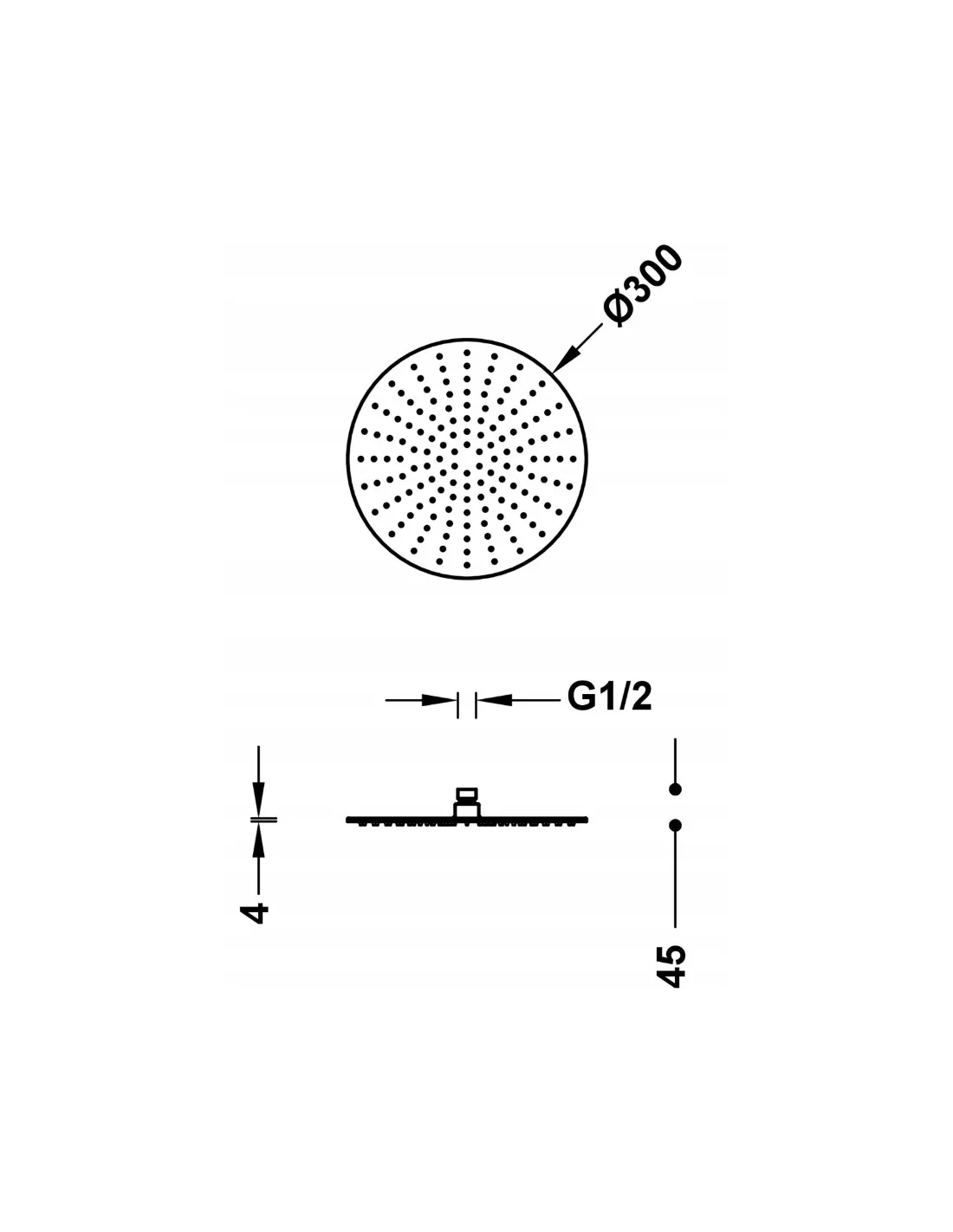 Wyjątkowo cienki profil: 4 mm. Wymiary: ? 300 mm. Regulowany przegub. Materiał: Stal nierdzewna. Dysze antyosadowe.
