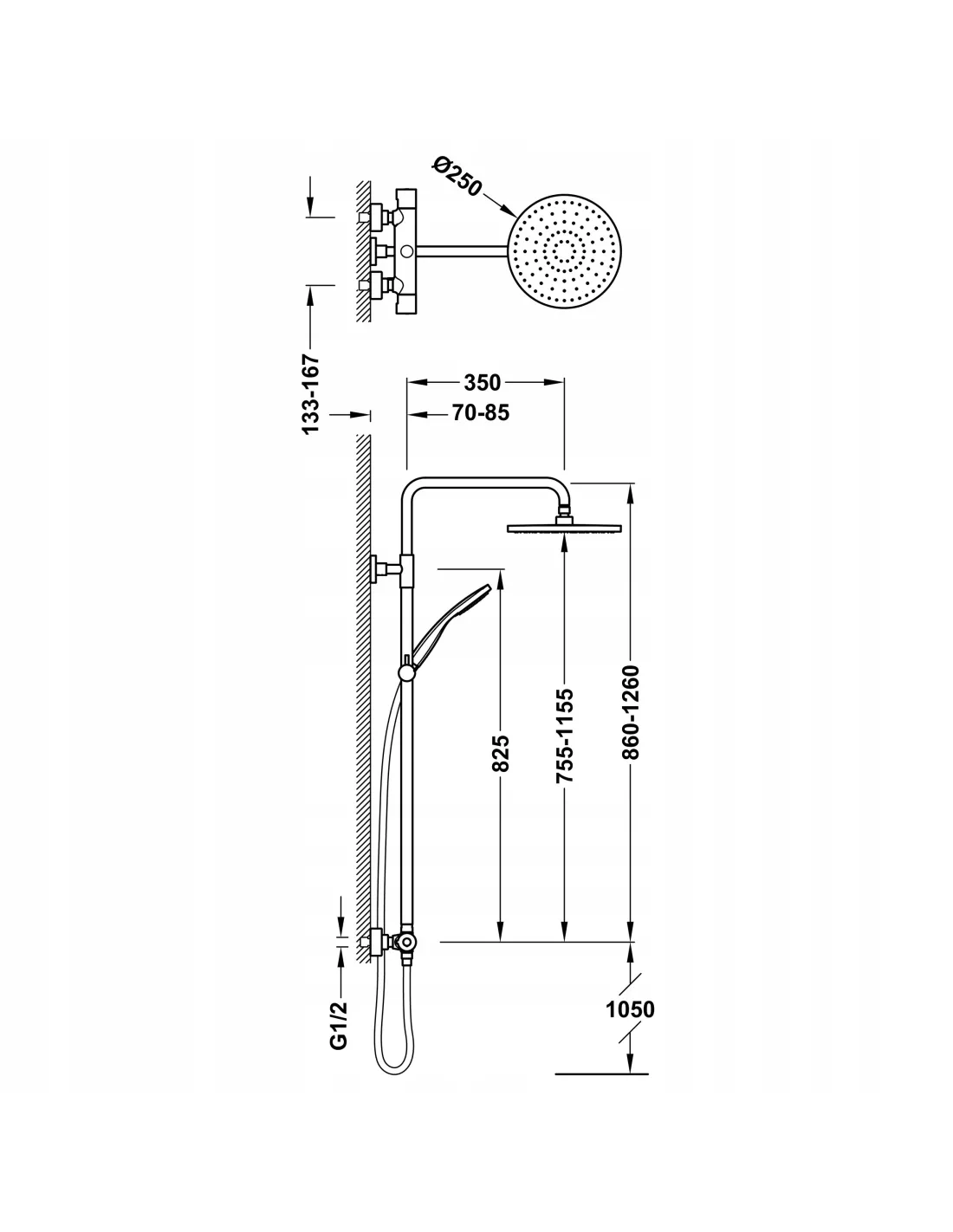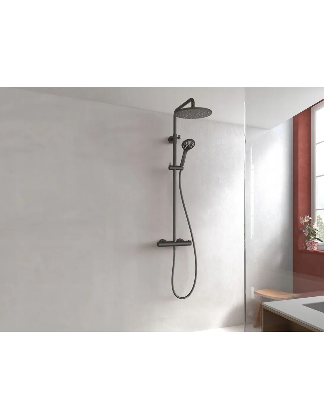 · Okrągły i przesuwny uchwyt do słuchawki prysznicowej.