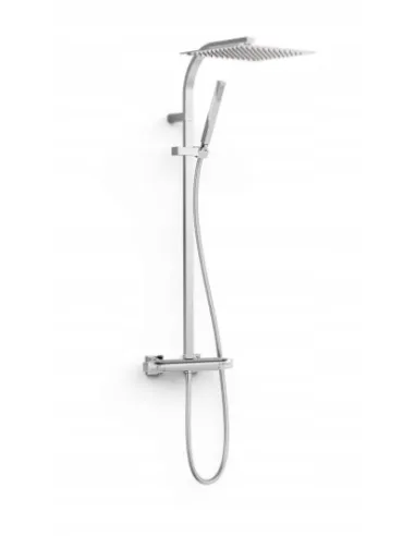 · Z inwersorem wbudowanym w regulatorze przepływu.· Pokrętło kwadratowo-okrągłe.· Deszczownica obrotowa ze stali nierdzewnej: 300x300 mm.· Obrotowy i przesuwny uchwyt do słuchawki prysznicowej.· Słuchawka prysznicowa z mosiądzu z systemem zapobiegającym osadzaniu się kamienia.· Satynowy wąż.