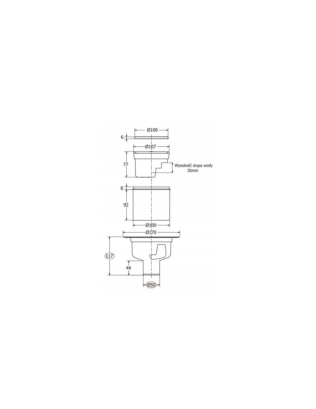 - Odpływ pionowy odejście: ? 50 mm