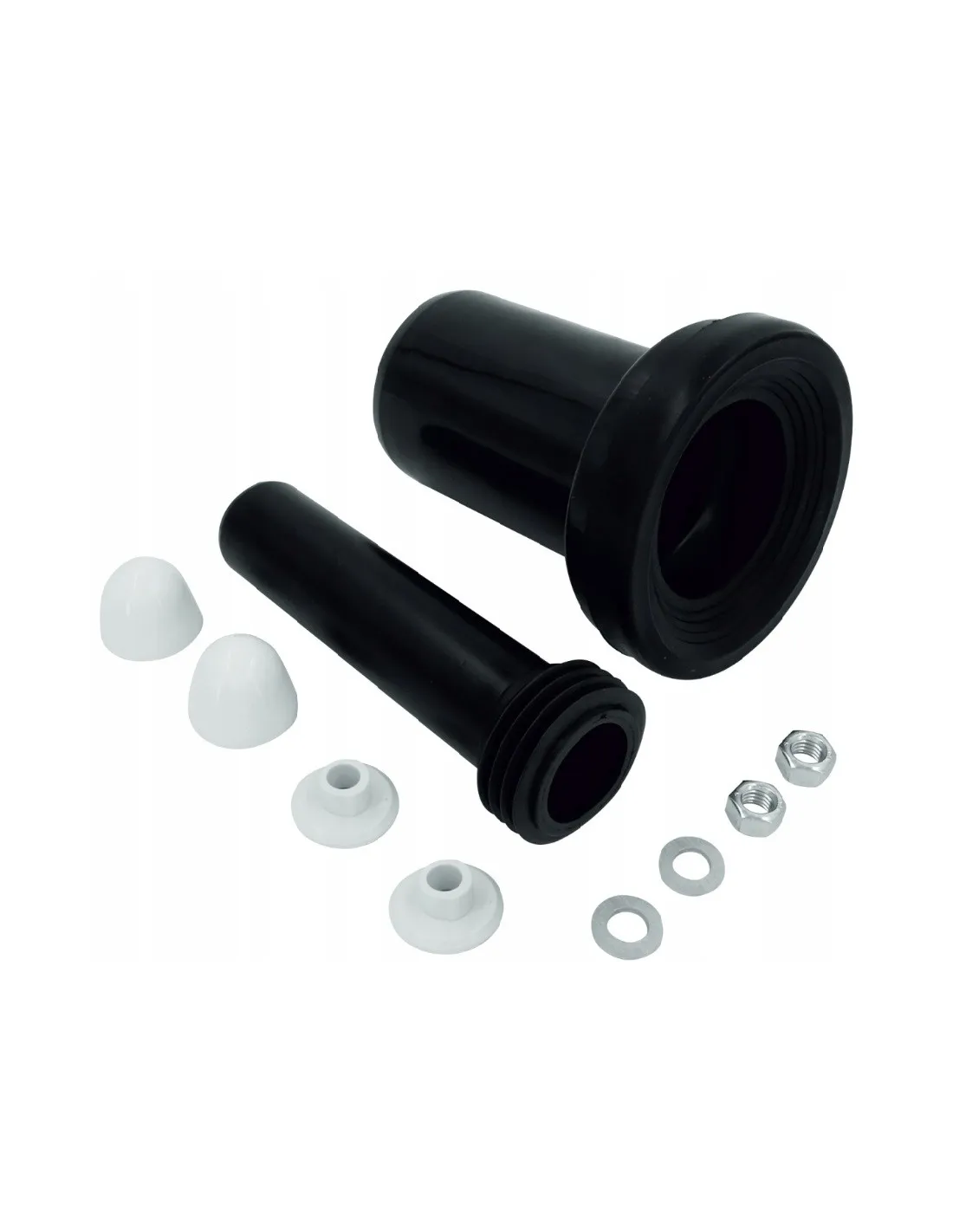 ?? KOMPLETNY ZESTAW - zawiera on niezbędne do montażu nakrętki, podkładki oraz zaślepki, a także przyłącze kanalizacyjne sztywne z kołnierzem wargowym.